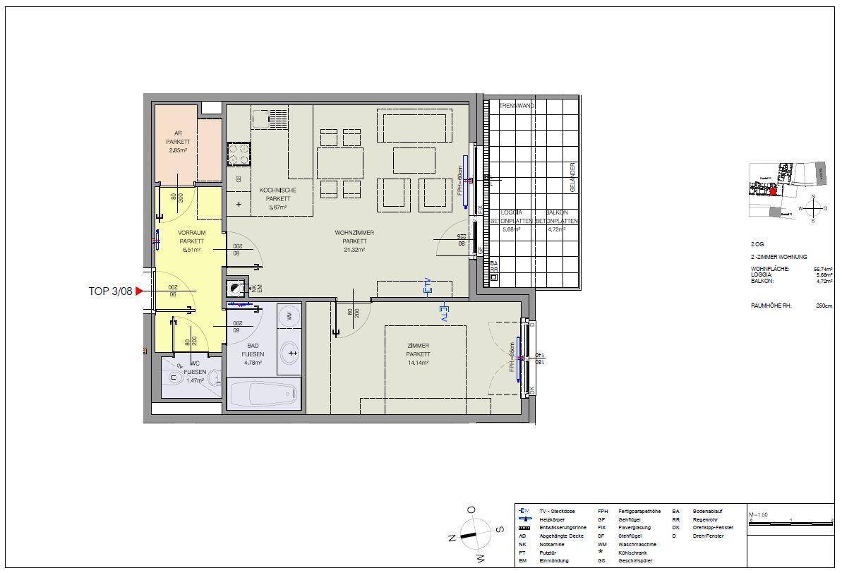 Schöne 2-Zimmer-Wohnung mit Balkon und Einbauküche (Innenhoflage/ 1140 Wien/ Neubau)