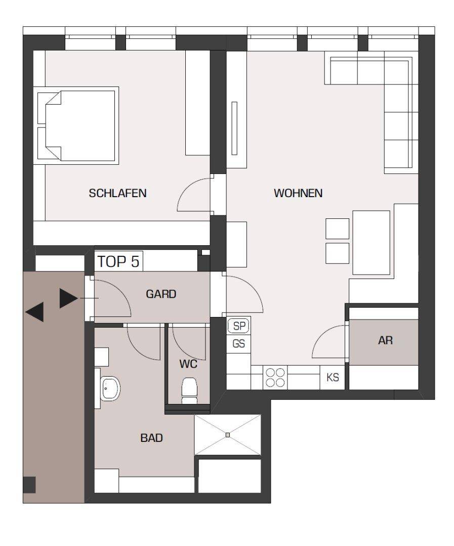 Neuwertige 2-Zimmer-Wohnung mit möblierter Küche und PKW-Stellplatz im Zentrum von Gurten