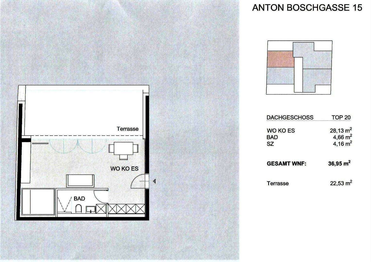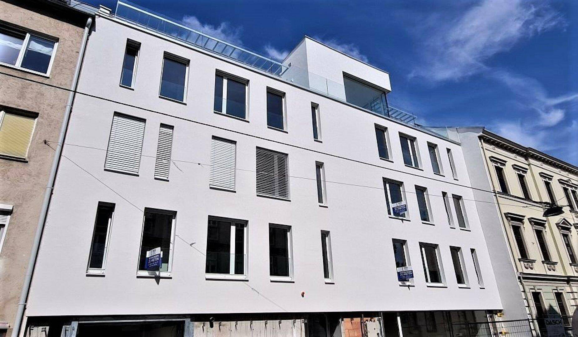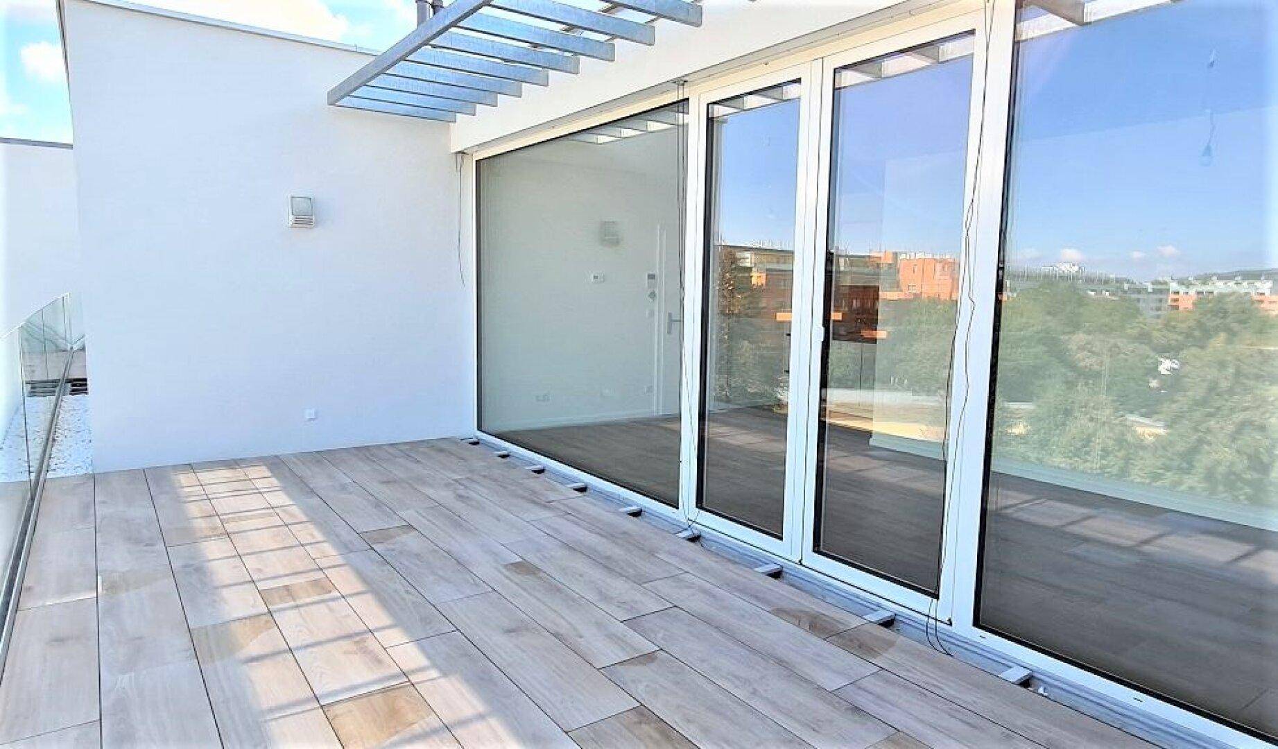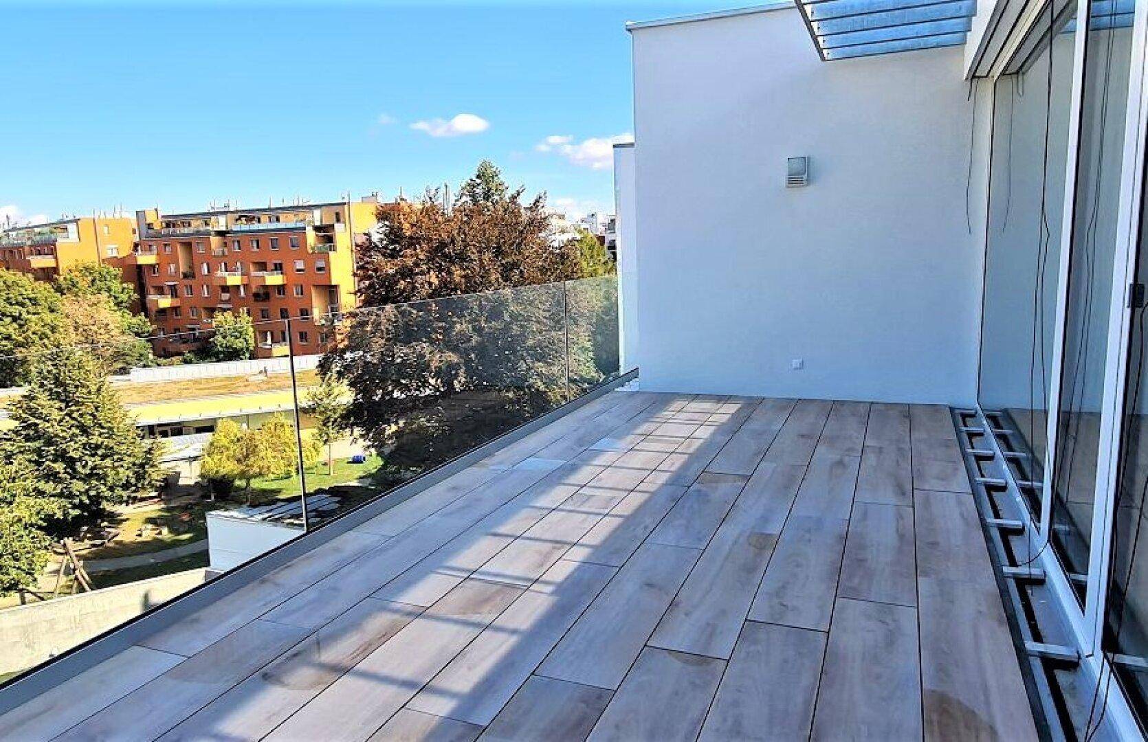 TERRASSENHIT, FERNBLICK, klimatisiertes 37 m2 Dachgeschoß mit 23 m2 Terrasse, 1 Zimmer, Komplettküche, Duschbad, Anton-Bosch-Gasse