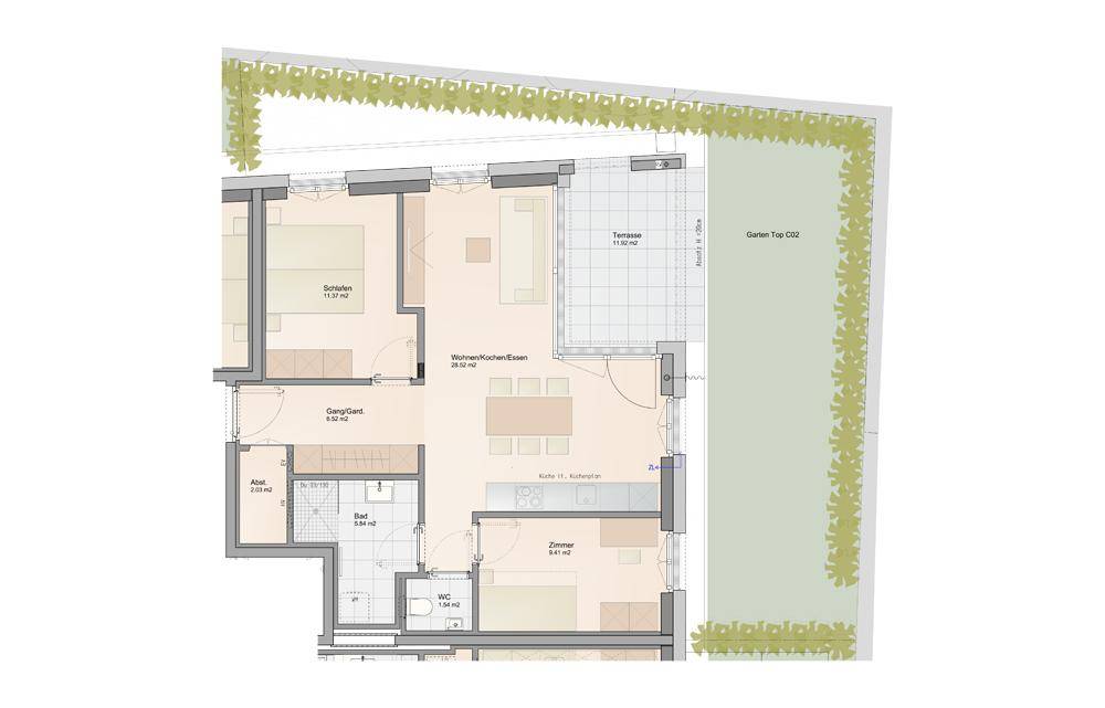 In Bau: 3-Zimmer Gartenwohnung in Ruhelage (Top C02)
