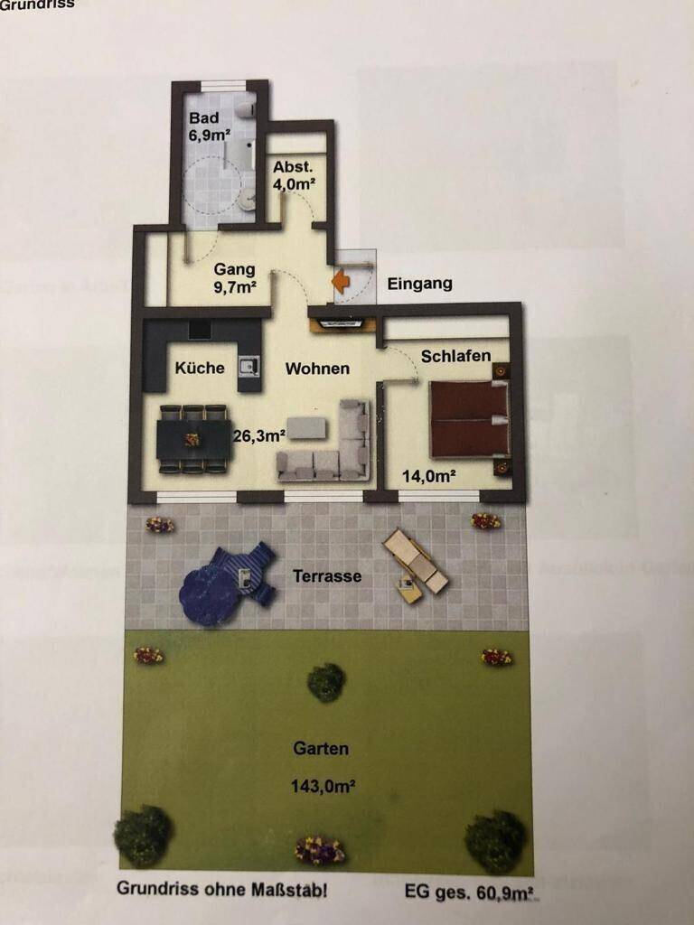 EINMALIGE GELEGENHEIT!! 2-Zimmer Gartenwohnung in sonniger Grenzlage zu verkaufen!!