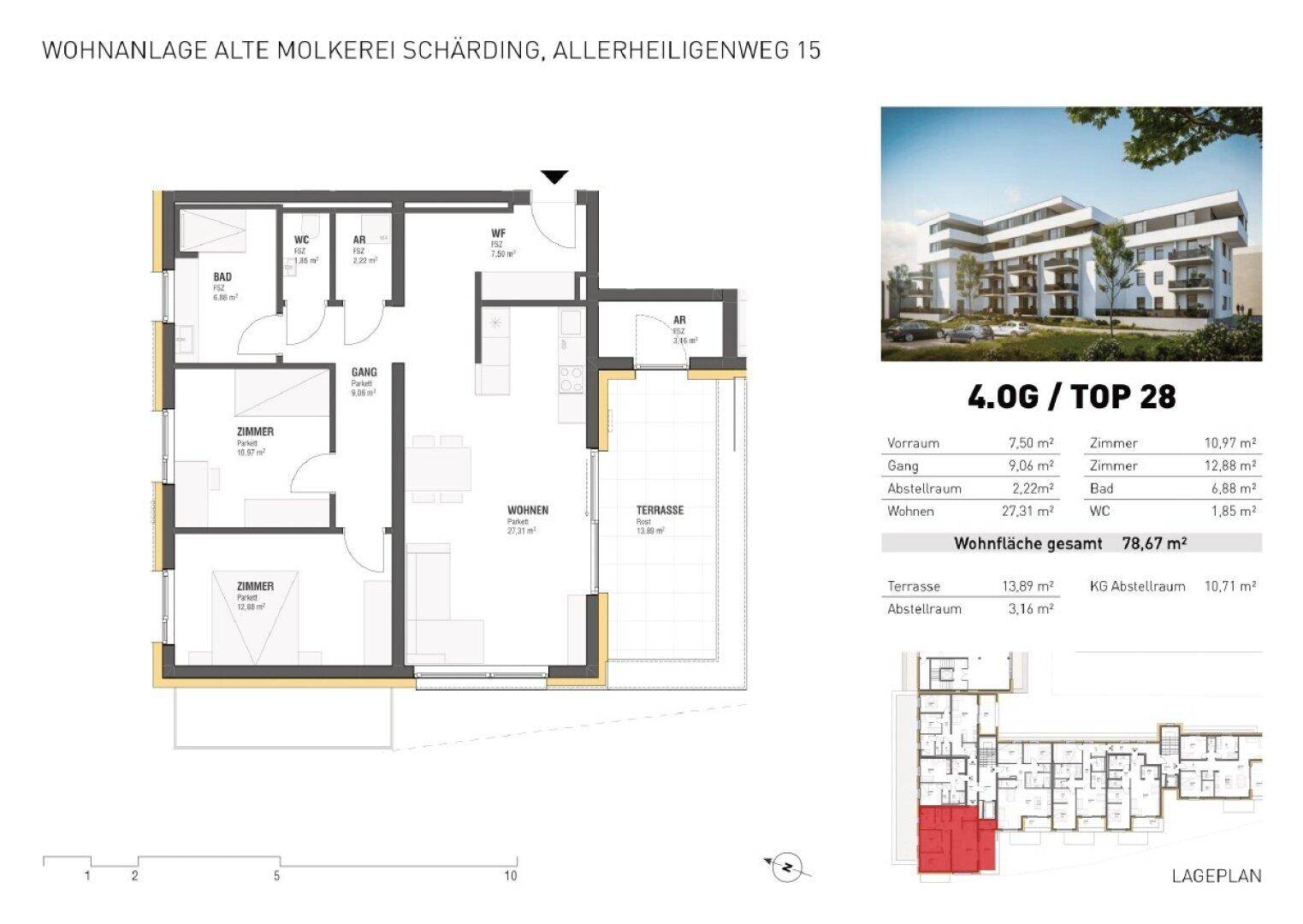 Wohnen über den Dächern von Schärding - hochwertige 3-Zimmer-Wohnung mit Dachterrasse und möblierter Küche