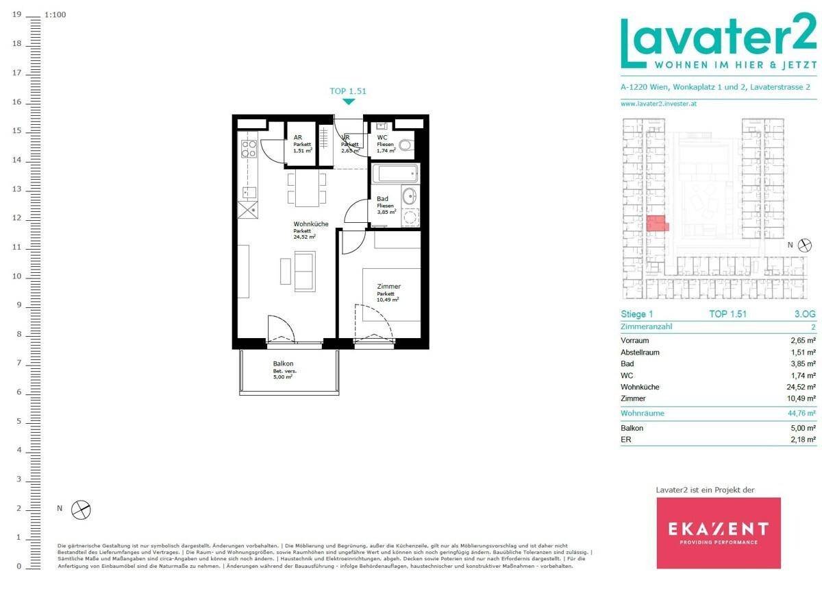 2 Zimmerwohnung mit Balkon | BILLA und HOFER direkt im HAUS | Top 1.51