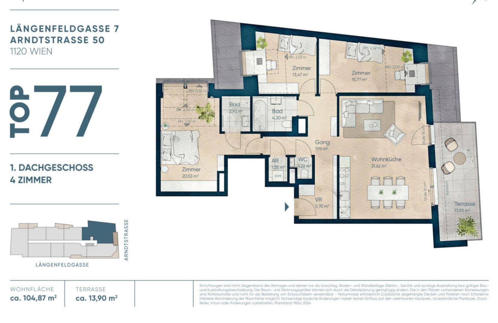 Modern wohnen in Meidling! DG-4-Zimmer-Erstbezug mit Terrasse - Top77