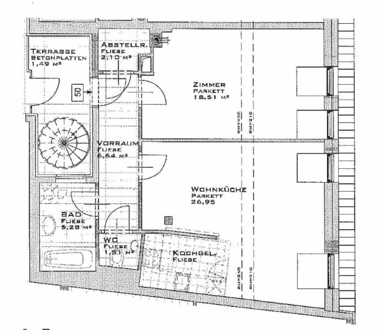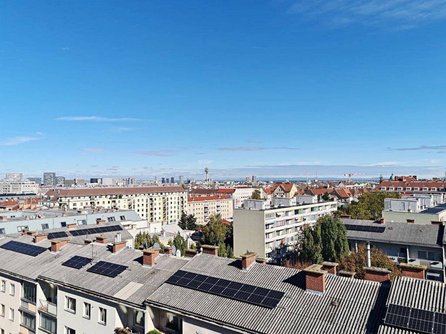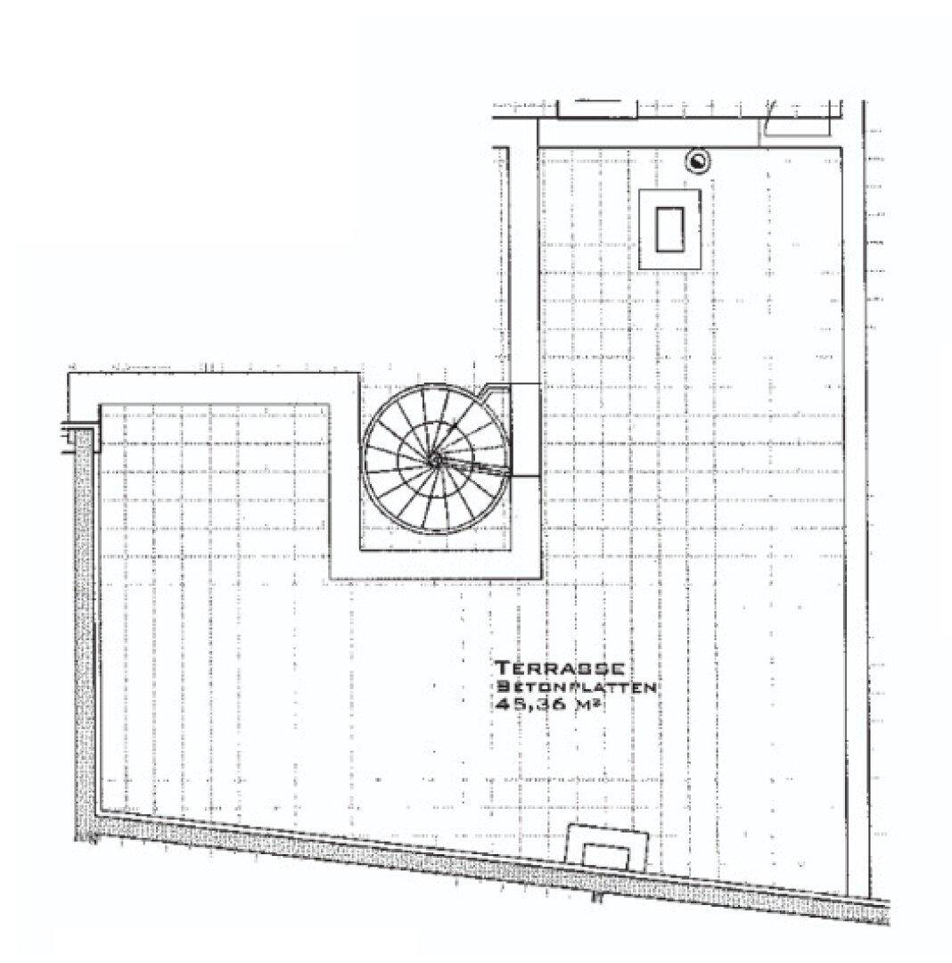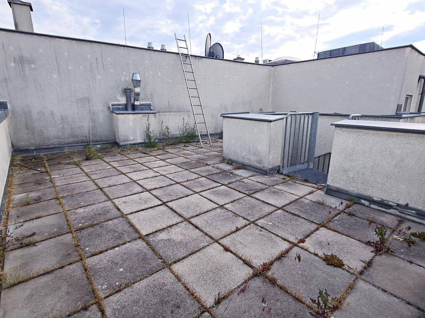 TERRASSENHIT, 61 m2 Dachgeschoß mit 48 m2 Terrasse, Wohnküche, 1 Zimmer, Wannenbad, Parketten, Fernblick, Holbeingasse