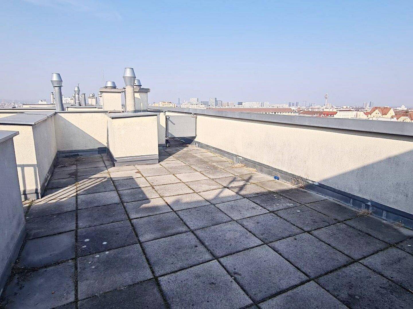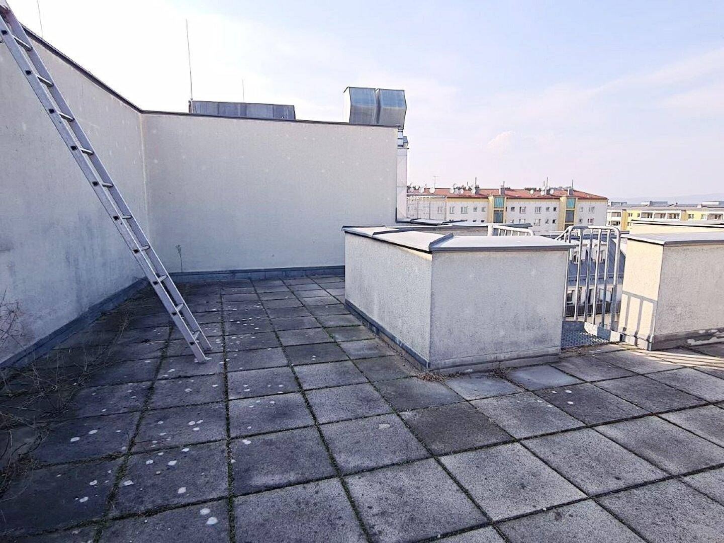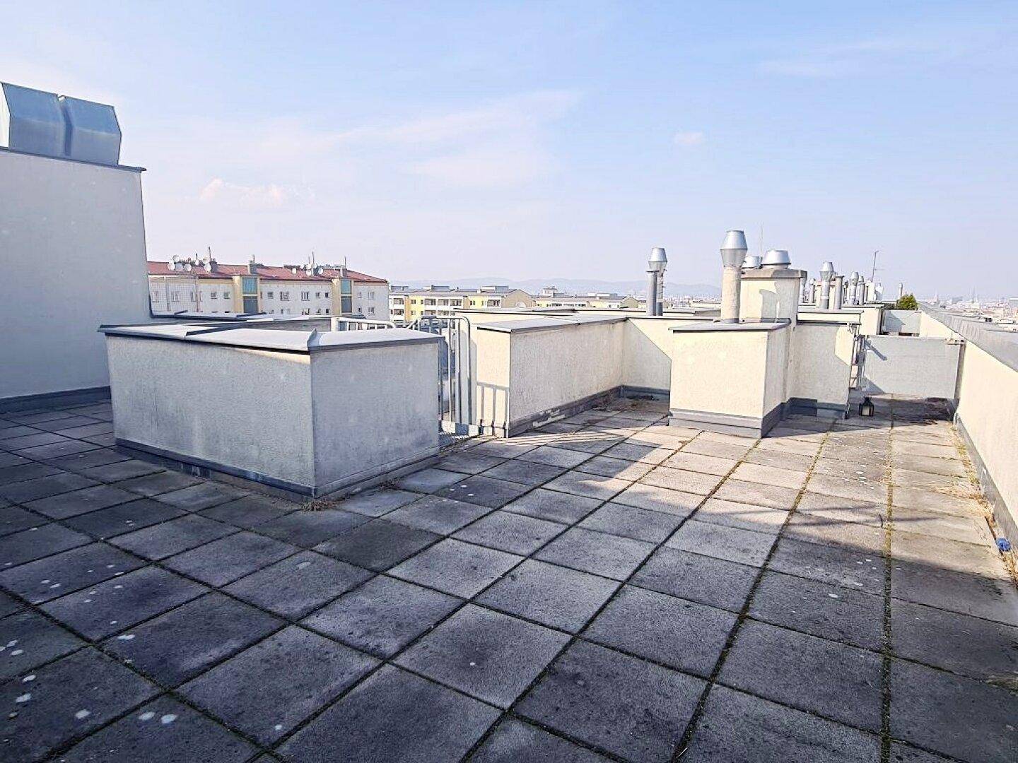 TOPGELEGENHEIT, Fernblick, 61 m2 Dachgeschoß mit 48 m2 Terrasse, Wohnküche, 1 Zimmer, Wannenbad, Parketten, Holbeingasse