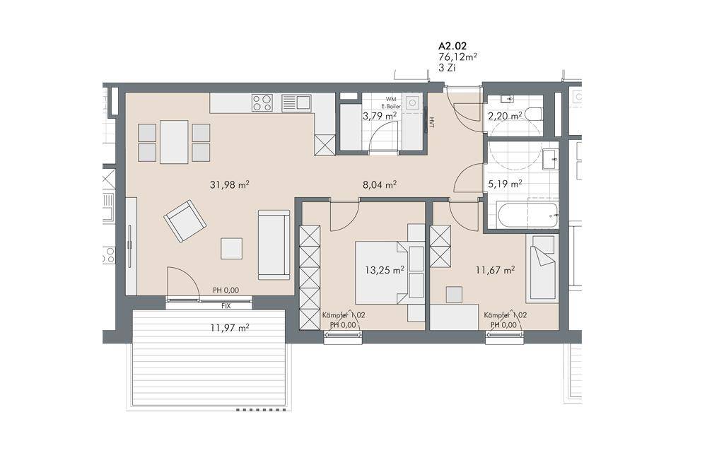 Attraktive 3-Zimmer Wohnung mit Balkon (Top A2.02)