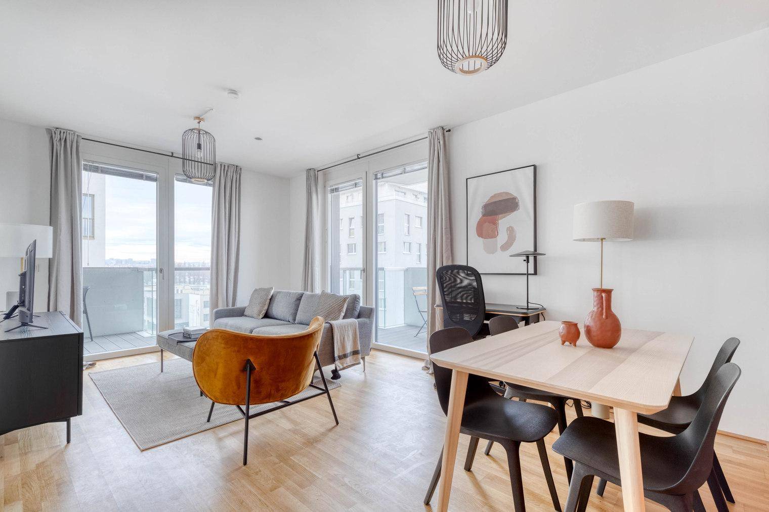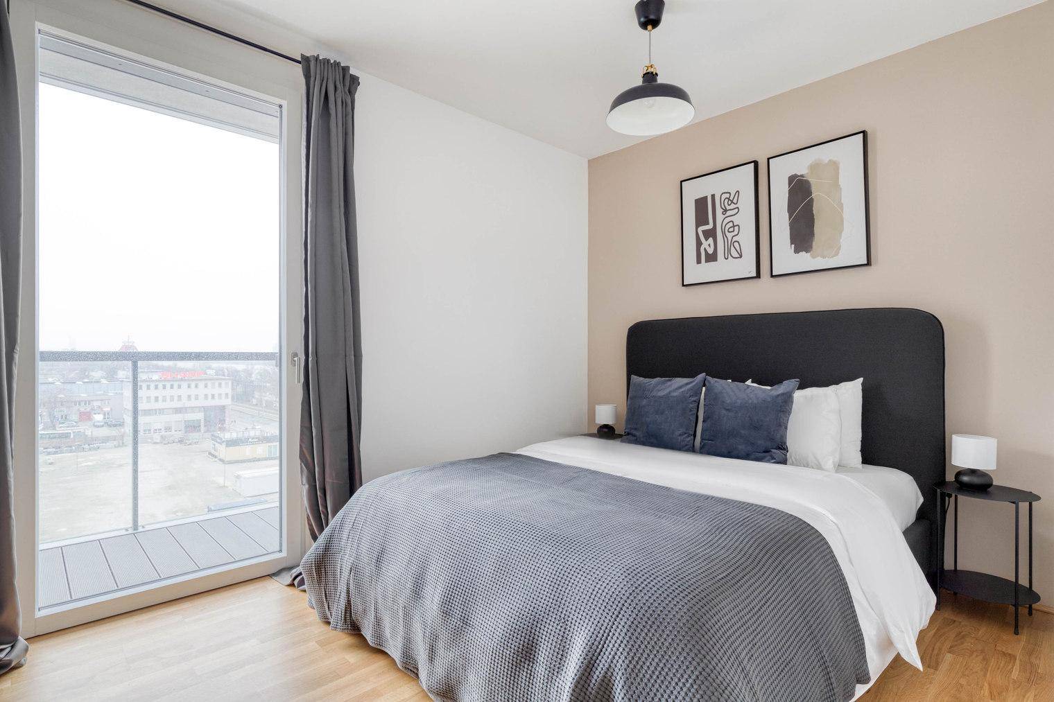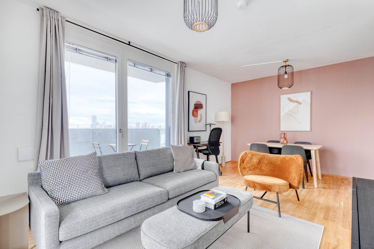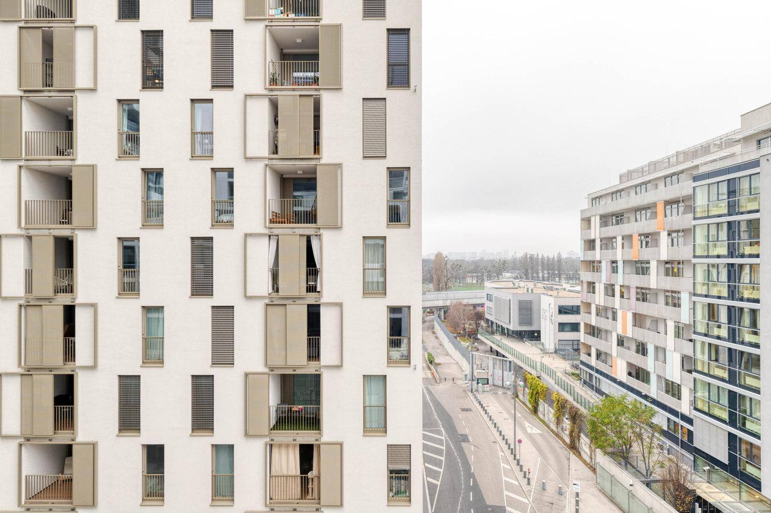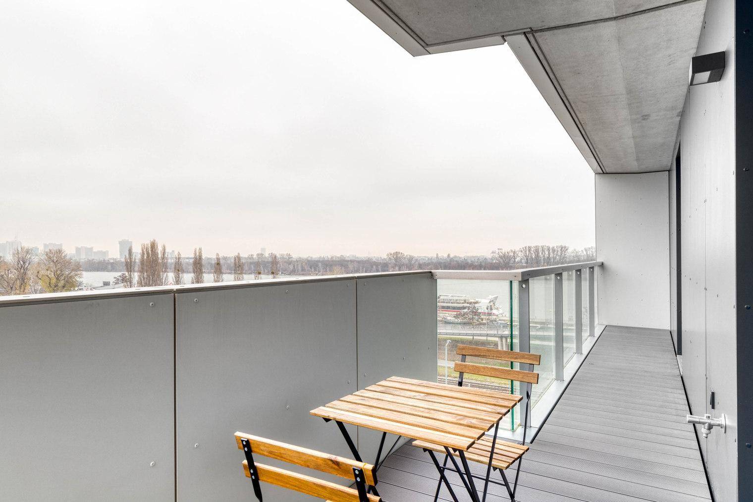 Marinatower: U2 Donaumarina, 3 Zi mit Balkon mit Ausblick auf Donau, Gym, Sauna, Shops im Tower (VIE246)