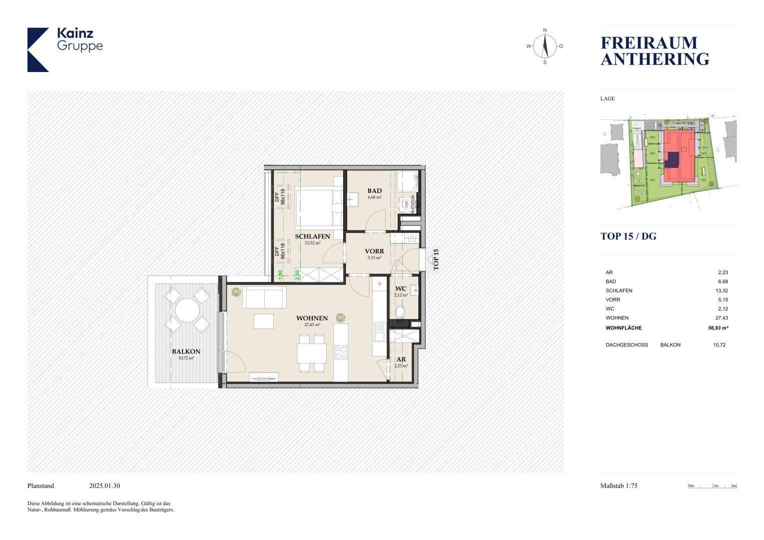 2 Zimmer Dachgeschoß Wohnung mit sonnigem Balkon in Anthering