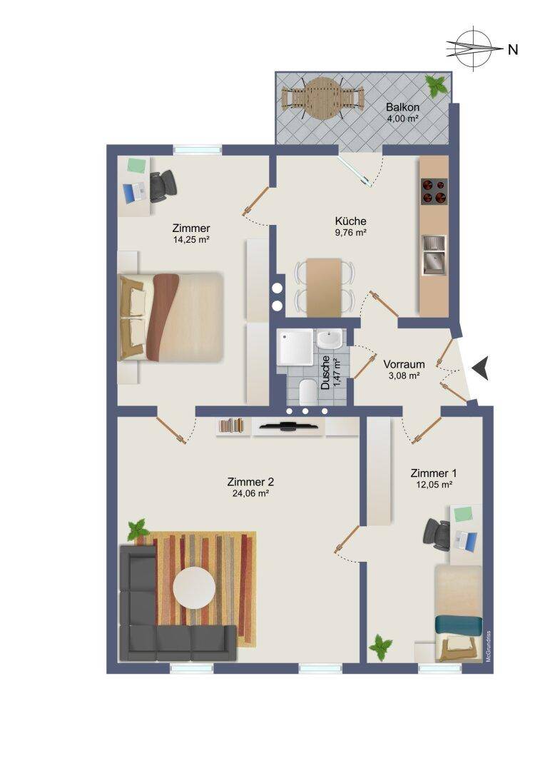 Grüner Ausblick & Absolute Ruhe: Vermietete 3 Zimmer mit Balkon in Einbahnstraßen-Idyll in Graz-Eggenberg!