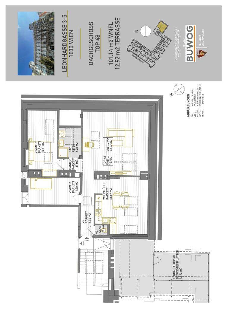 Zentral wohnen im 3. Bezirk: Großzügiger 3-Zimmer-ERSTBEZUG im DG mit KÜCHE und separater TERRASSE, absolute Ruhelage, U3-Nähe