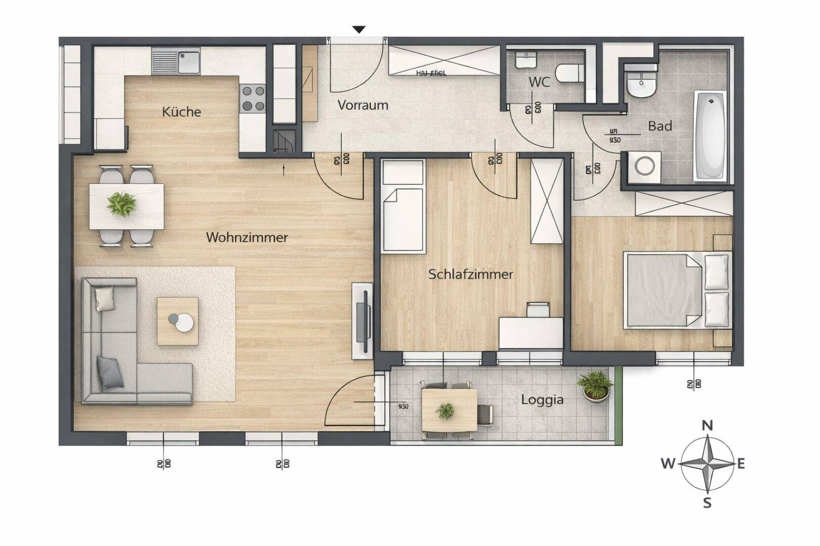 Lichtdurchflutete 3-Zimmer Wohnung mit Loggia und Garagenstellplatz!