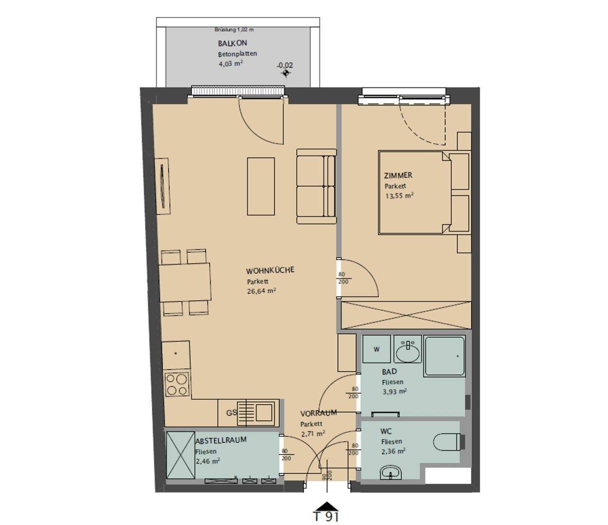 Moderne 2-Zi -Wohnung mit Loggia - nahe Millennium City (provisionsfrei!)