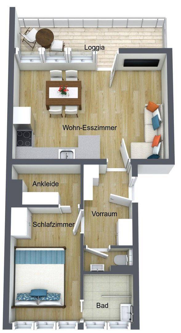 Kernsanierte 2 Zimmer Wohnung mit Garage und Loggia! - provisionsfrei