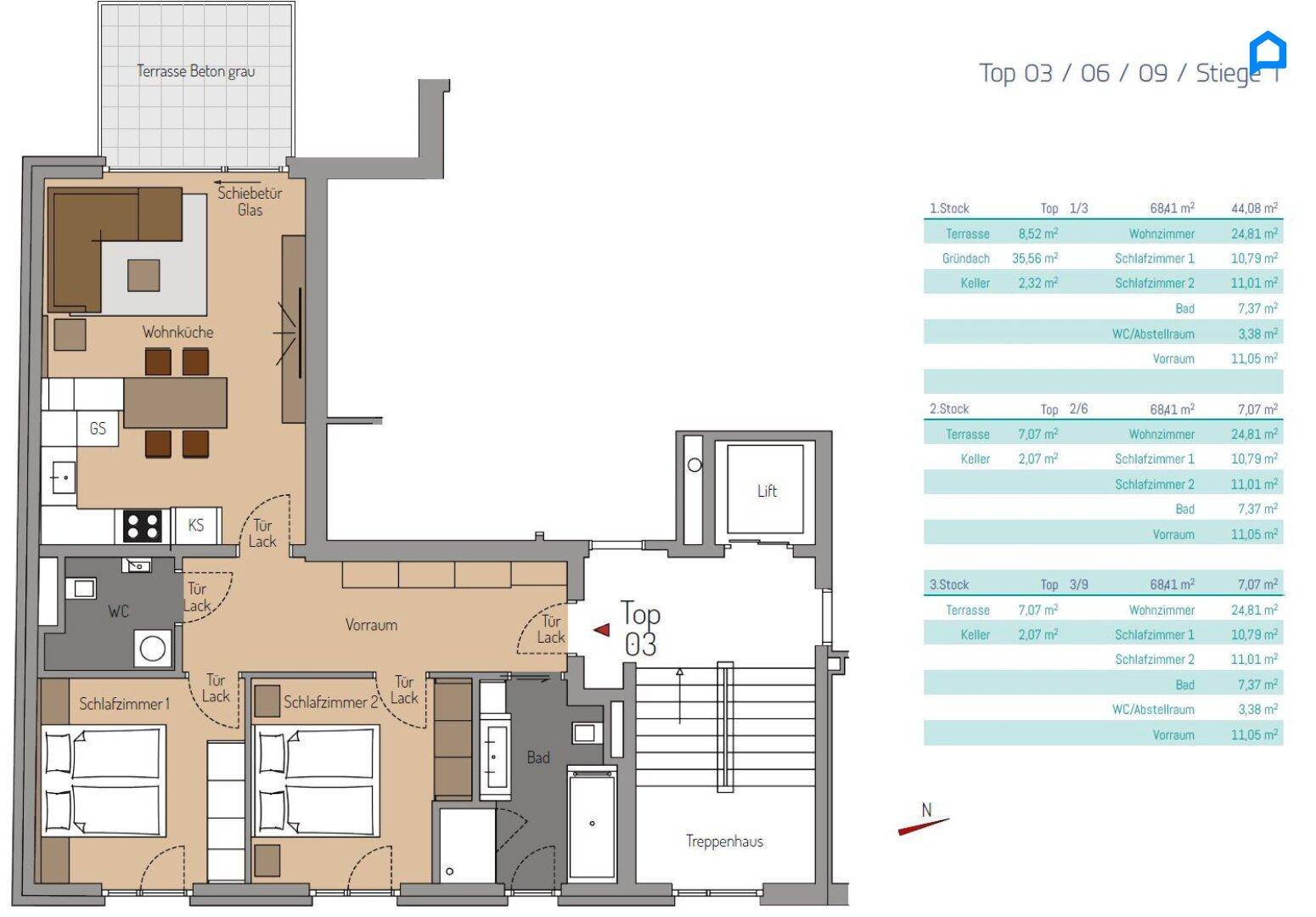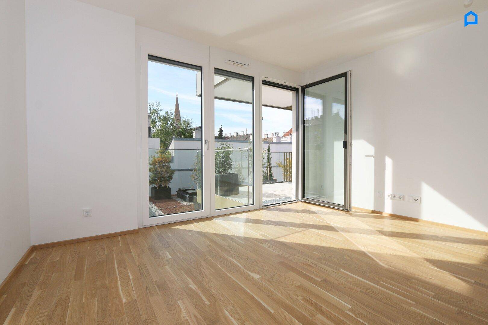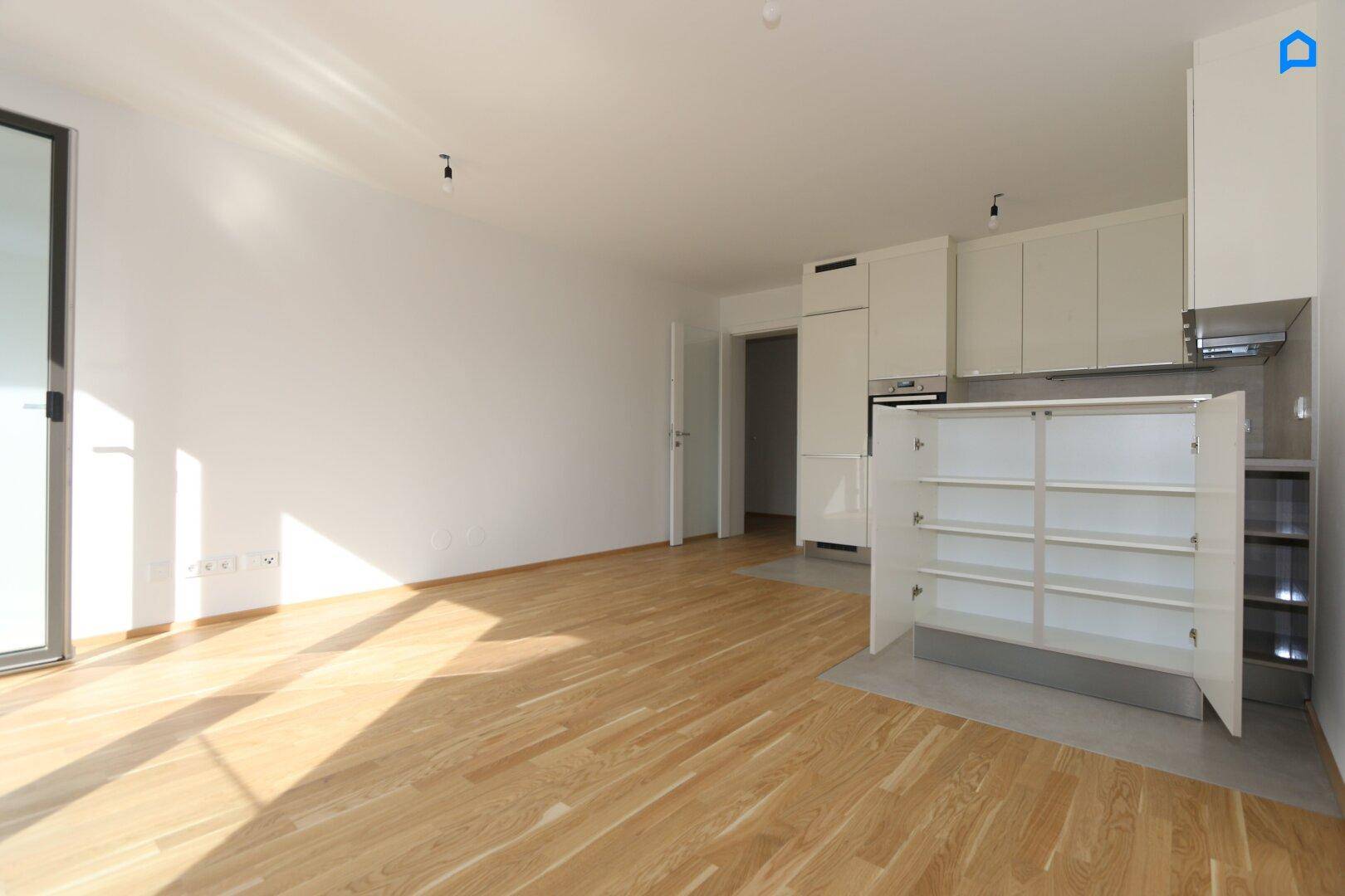 LUXUS-Wohnung, 3 Zimmer, 2.OG, West-Terrasse, Pauschale allinklusiv Miete, Maßeinbau-Küche, zugfreie Deckenkühlung, FBH, Alarmanlage, Garage, Lift, barrierefrei
