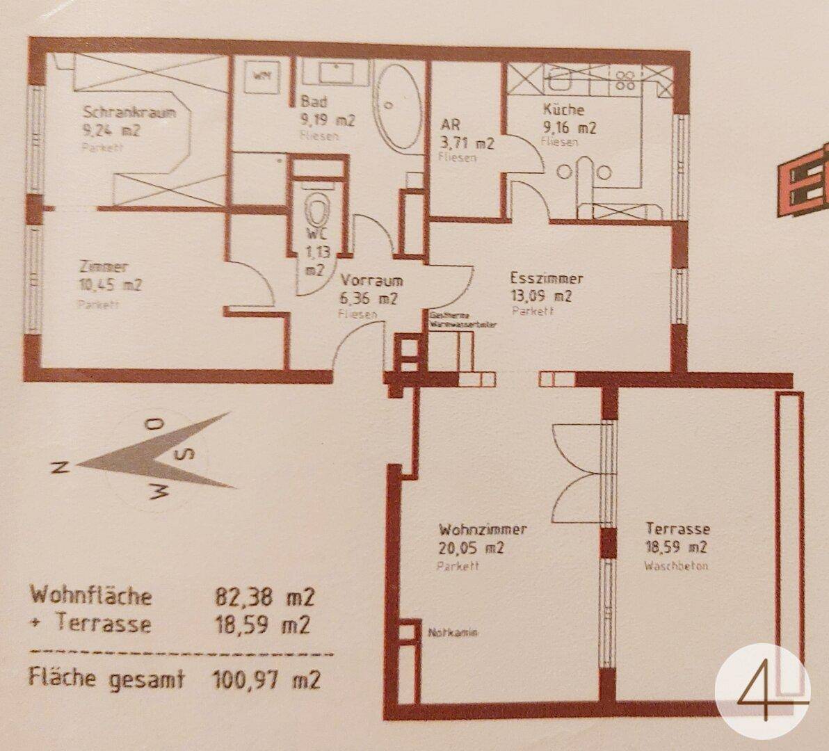Dachgeschoßwohnung mit 19 m2 Terrasse und Grünblick