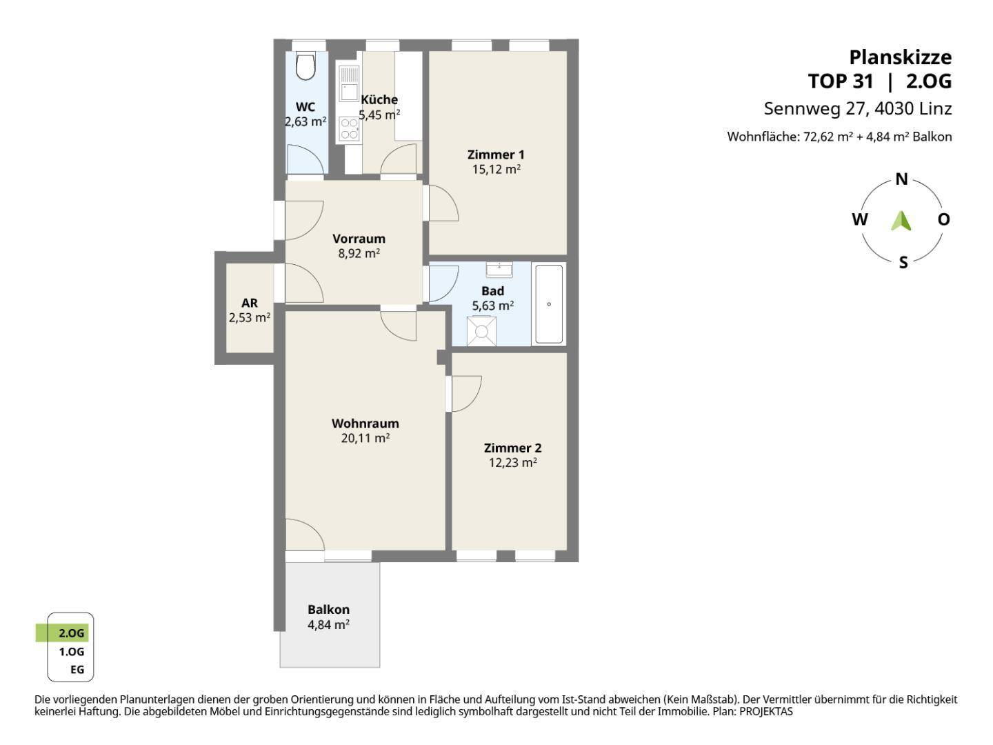 Gut aufgeteilte 3 Zimmerwohnung mit Küche & Parkplatz in Linz-Ebelsberg! 360° Rundgang online!