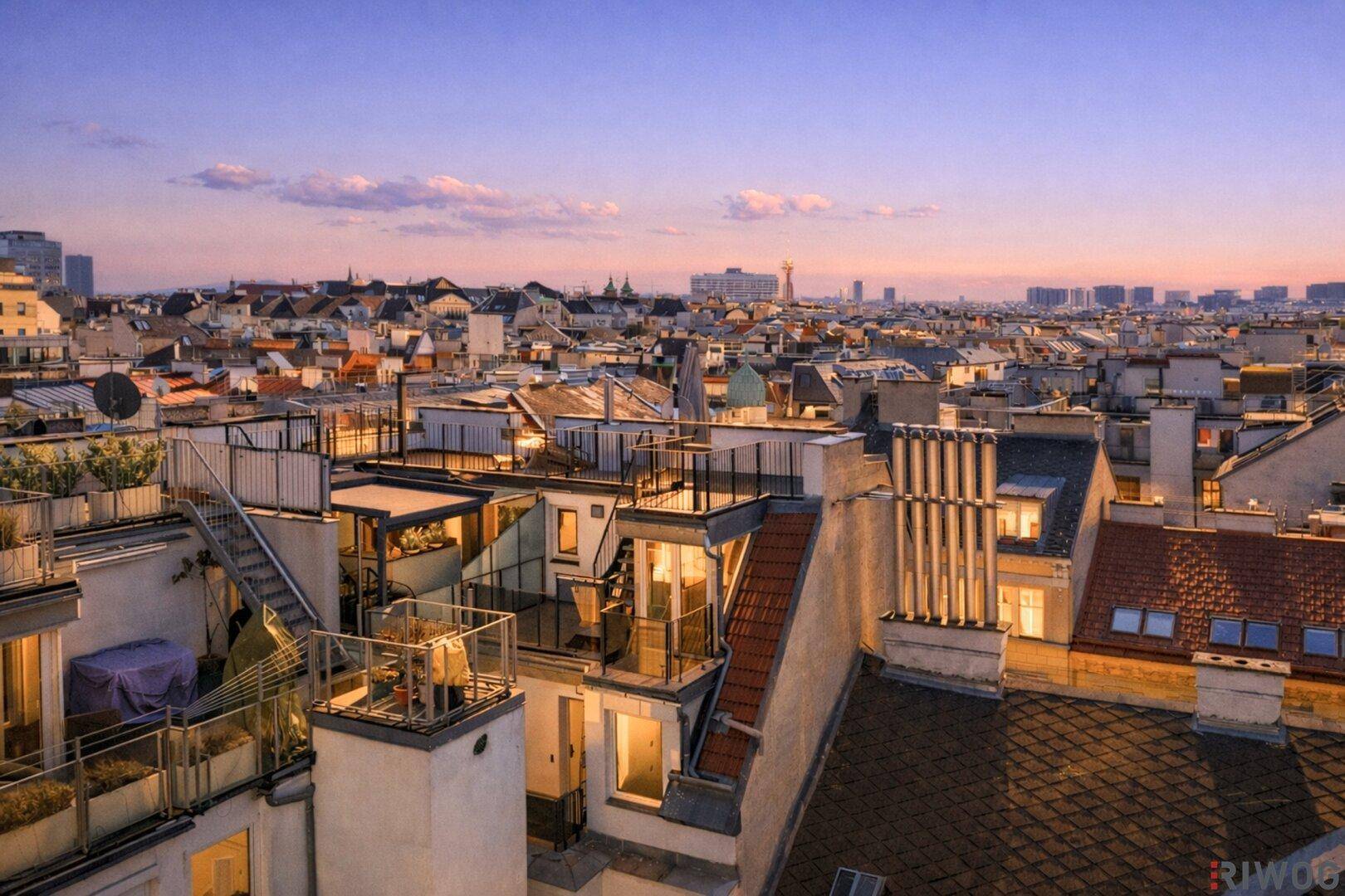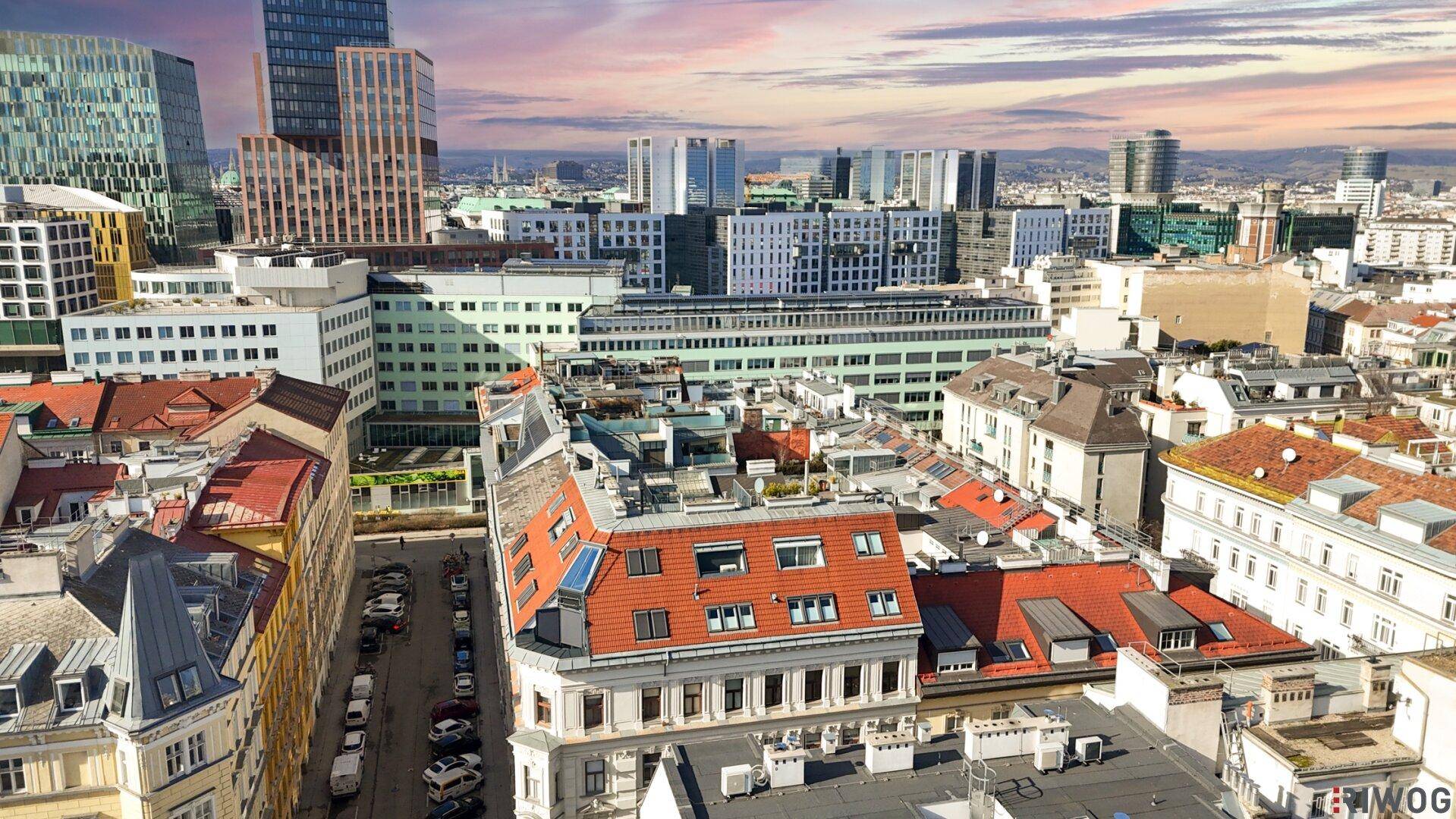 360° CITY VIEW - STYLISCHE DACHGESCHOSSMAISONETTE MIT TERRASSE UND DACHTERRASSE NÄHE 1.BEZIRK / WIEN MITTE / U3 / U4 / ROCHUSMARKT / URANIA