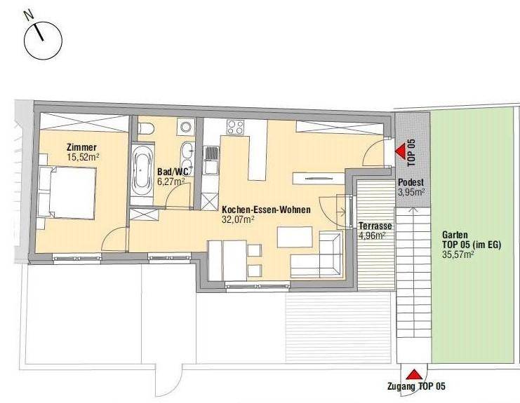Gartenwohnung im 1. Stock ~ 2 Zimmer ~ süd-östlich ausgerichtet ~ Parkplatzmöglichkeit