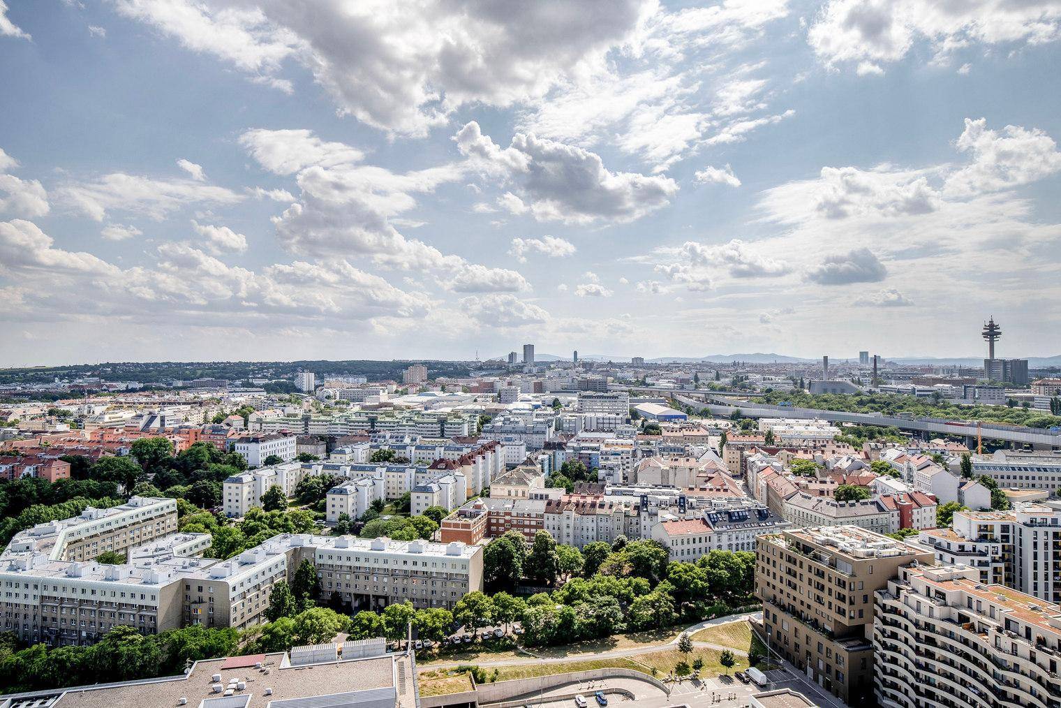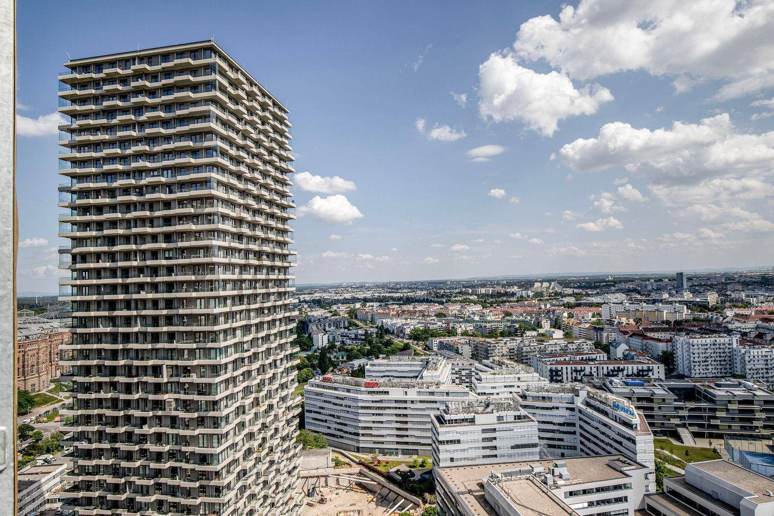 Neubau 2 Zi mit Freifläche, dazu schöner Ausblick über Wien mit Gym, Wellness, U3 Gasometer (VIE305)