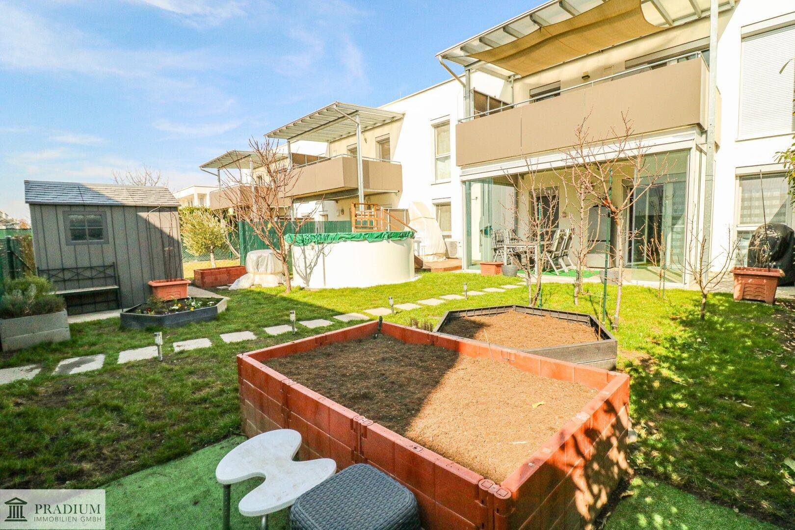 Helle Neubau-Gartenwohnung mit großem Garten und zwei Parkplätzen in Lanzendorf