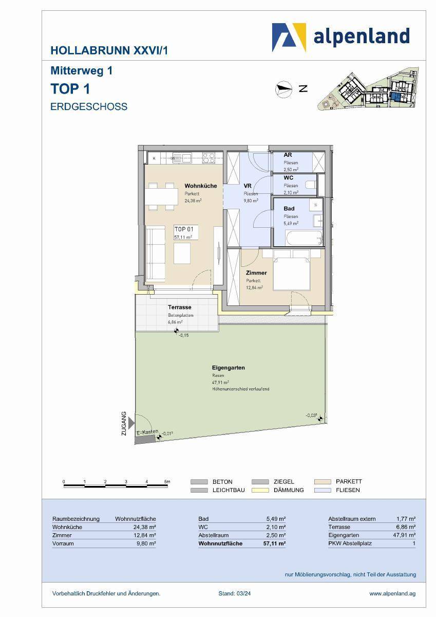 HOLLABRUNN XXVI/1, geförderte Mietwohnung mit Kaufoption, EG, Top 1, 1000/00011911/00001101