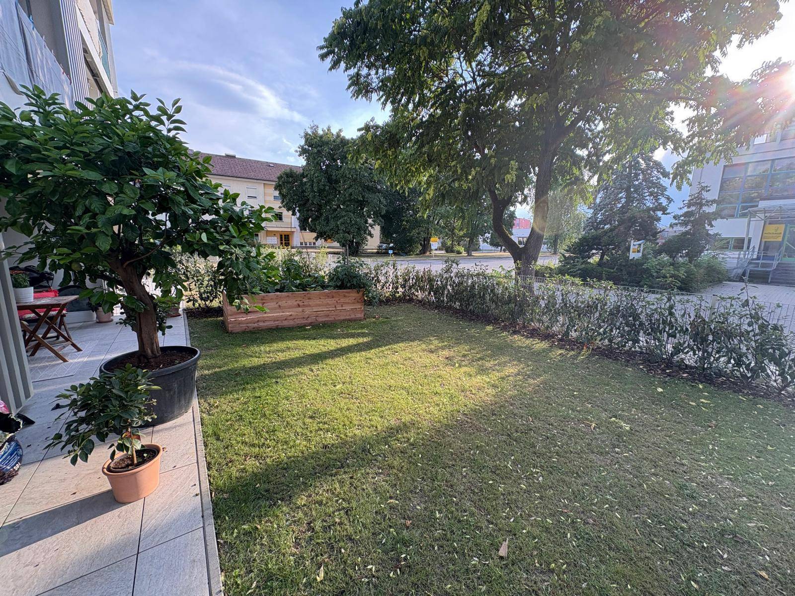 Neuwertige Erdgeschosswohnung mit großer, überdachter Terasse und Garten