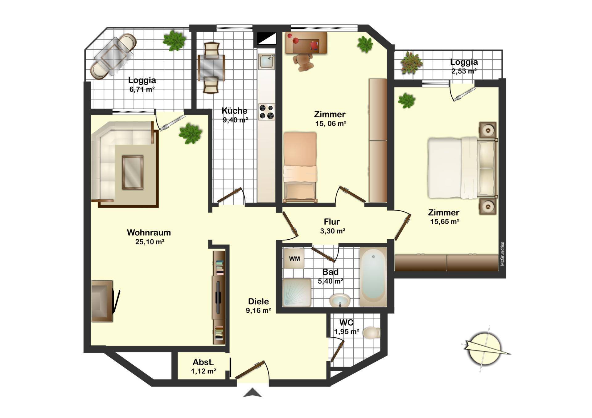 3-Zimmer-Wohnung mit zwei Loggien