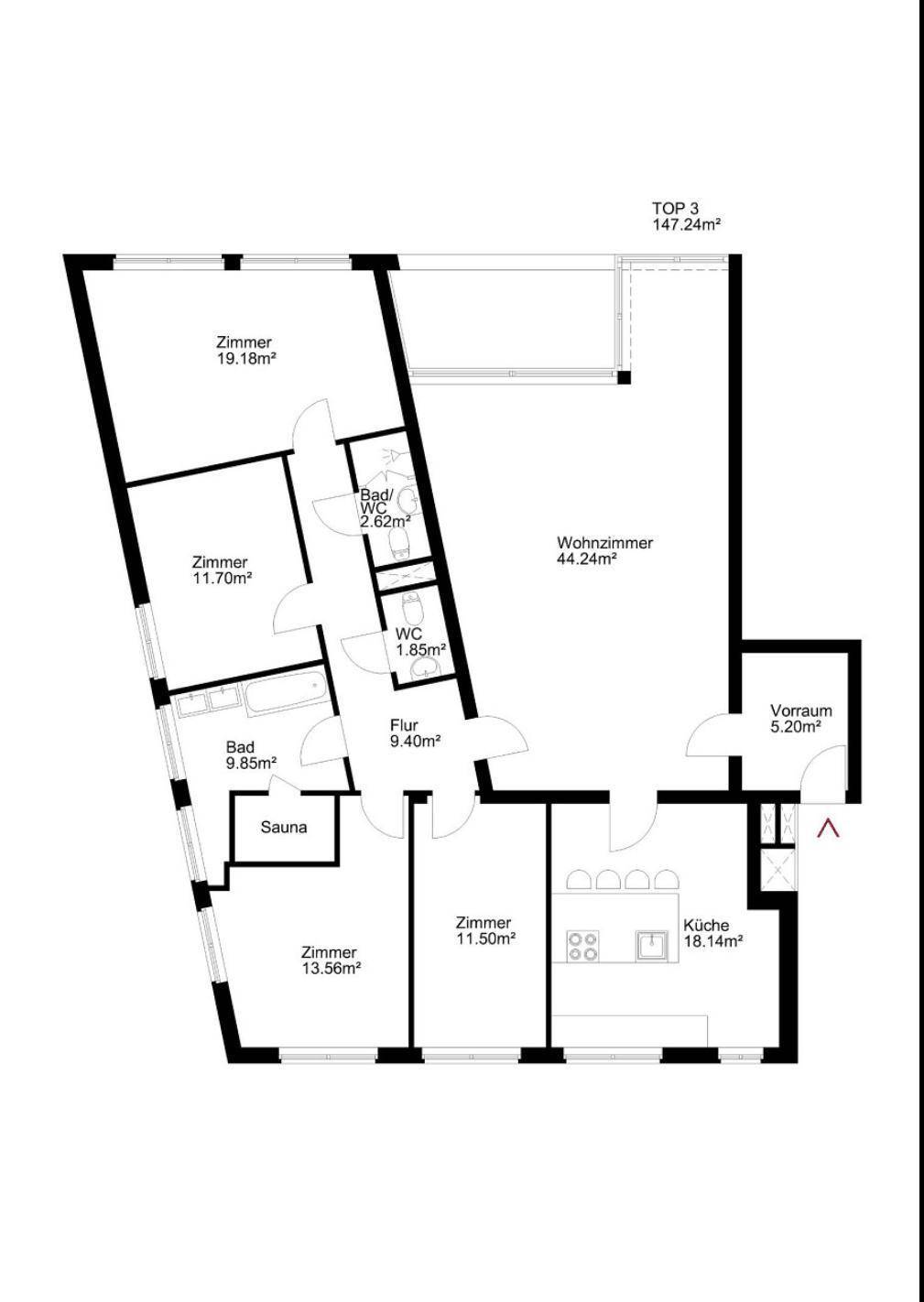 Grosse lichtdurchflutete moderne Wohnung in top Lage im dritten Bezirk