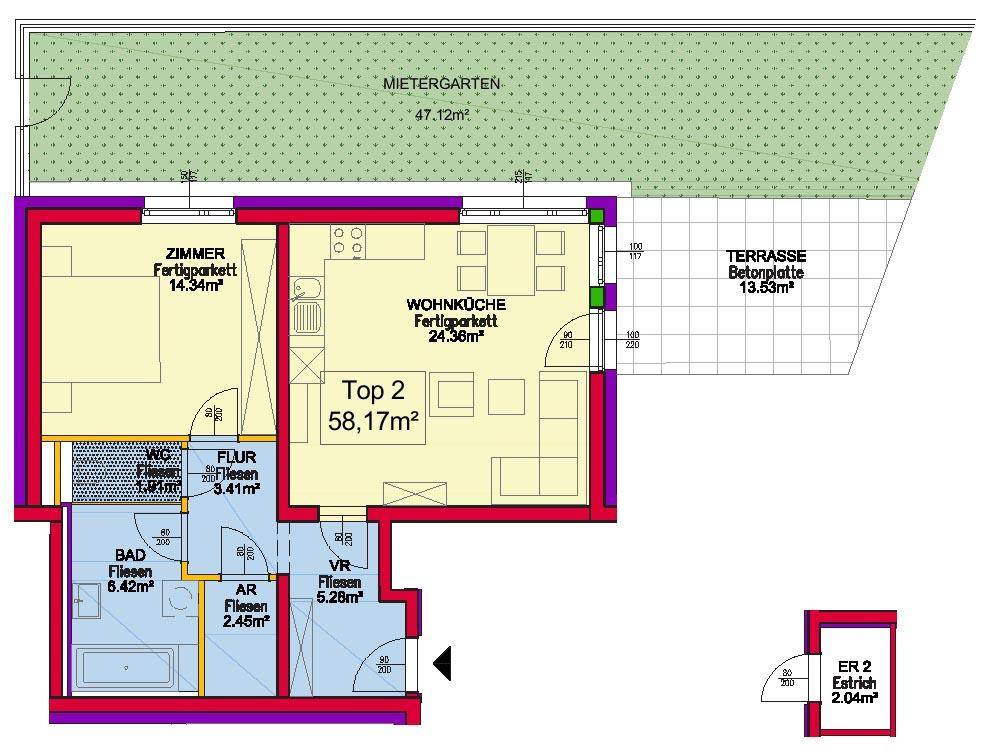 JungesWohnen-2 Zimmer-Eigengarten-Terrasse-1PKW-Stellplatz im Freien-Miete inkl. Heizkostenakonto