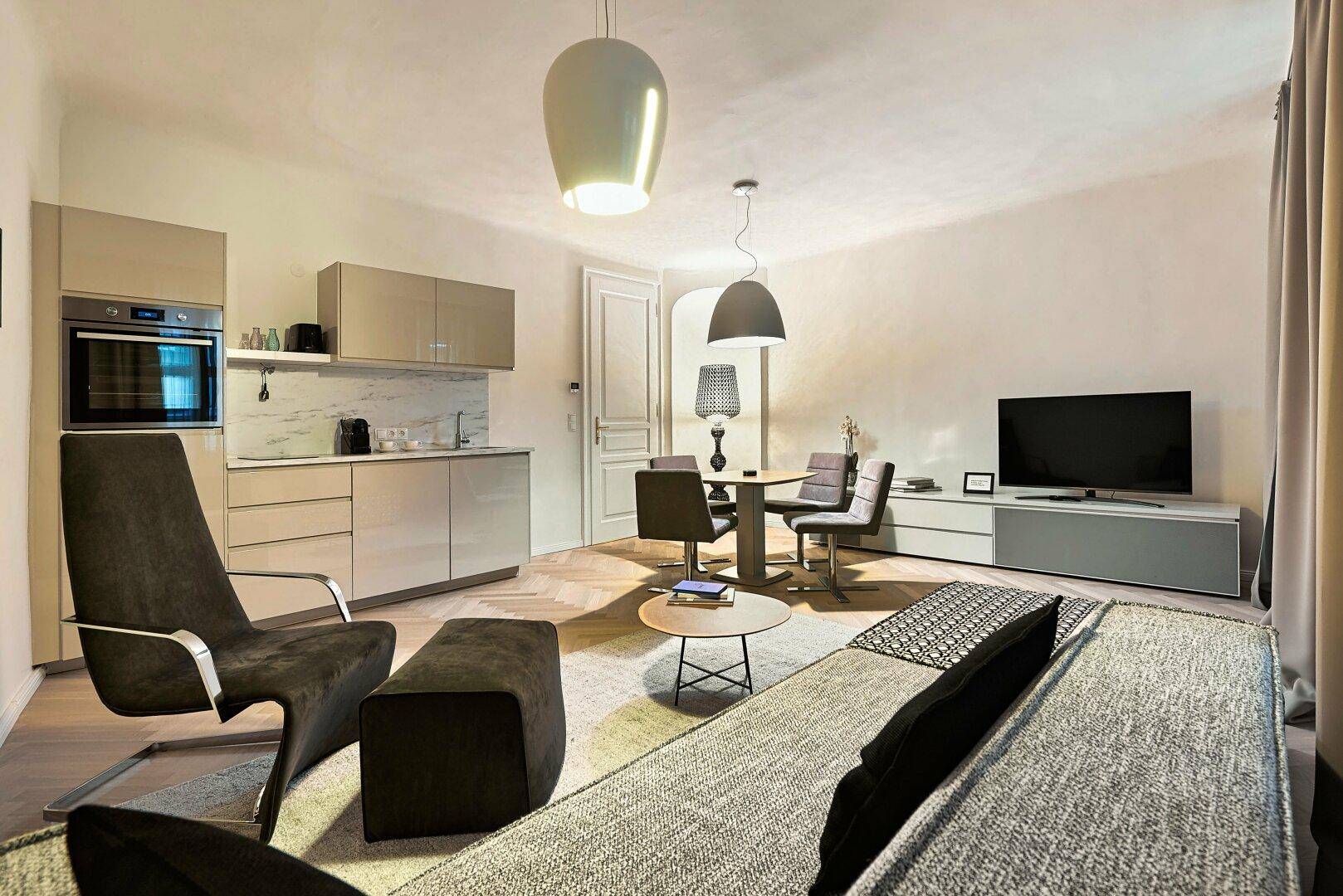 Biedermeierwohnung mit Balkon! Stylisch möbliertes 2-Zimmer-Apartment in Fußgängerzone!