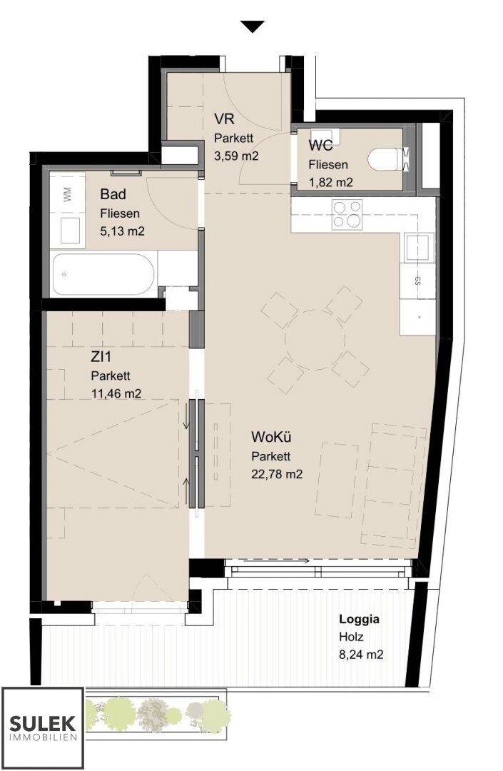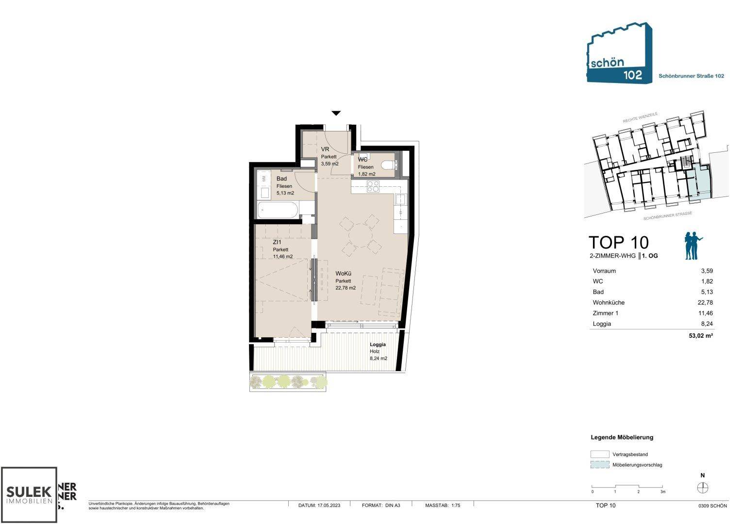 **ab 01.07.** Praktisch geschnittene Single- oder Pärchenwohnung im 1. Stock an der Schönbrunner Straße