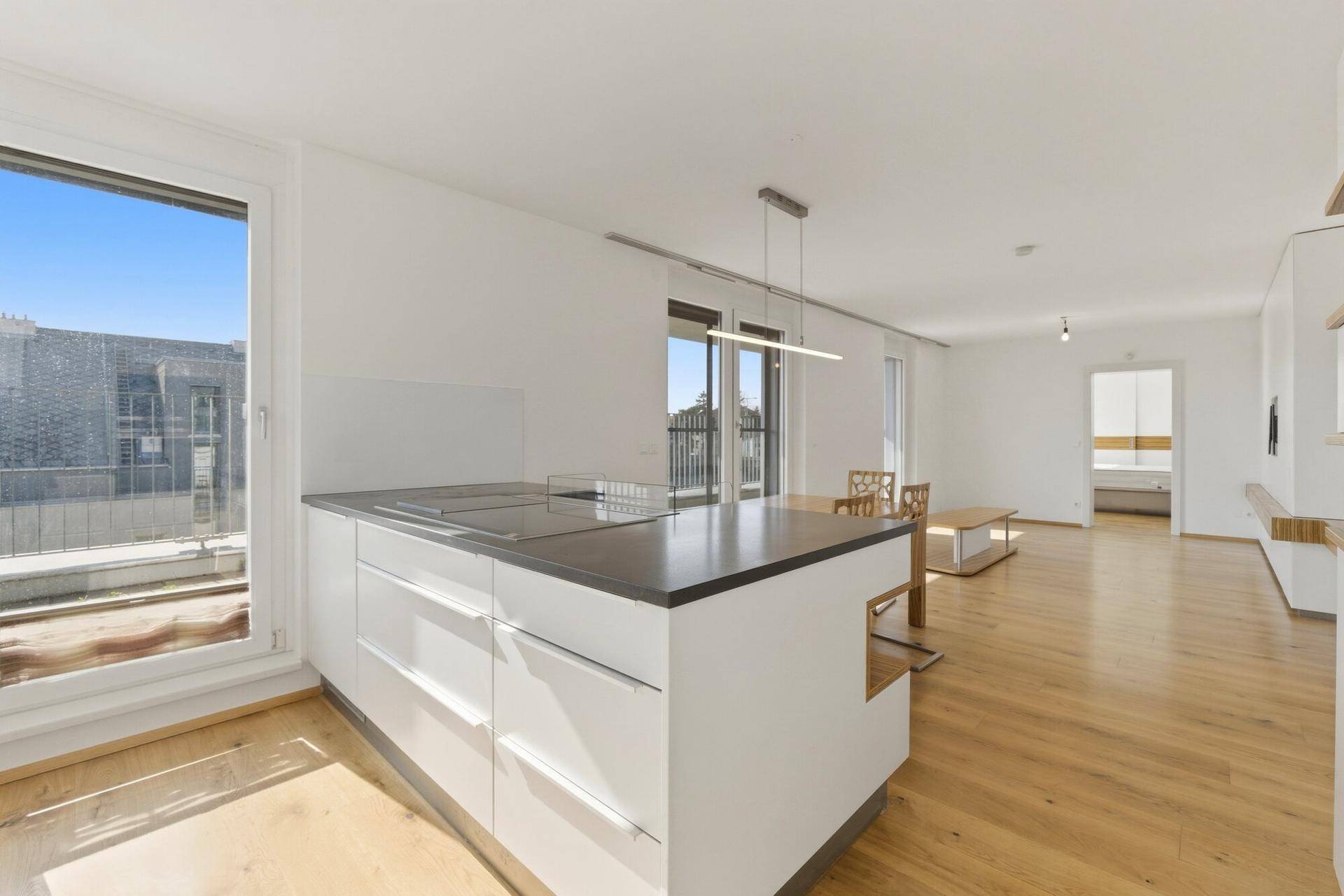 Dachgeschosswohnung mit hochwertigen Maßmöbeln, Terrasse, Klimaanlage & Stellplatz nahe Alten Donau