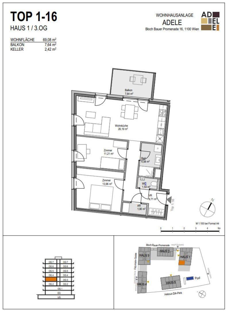 * ADELE * hochwertige 3-Zimmerneubauwohnung mit großem Balkon inkl. Pool, Fitnessraum & Dachterrasse!