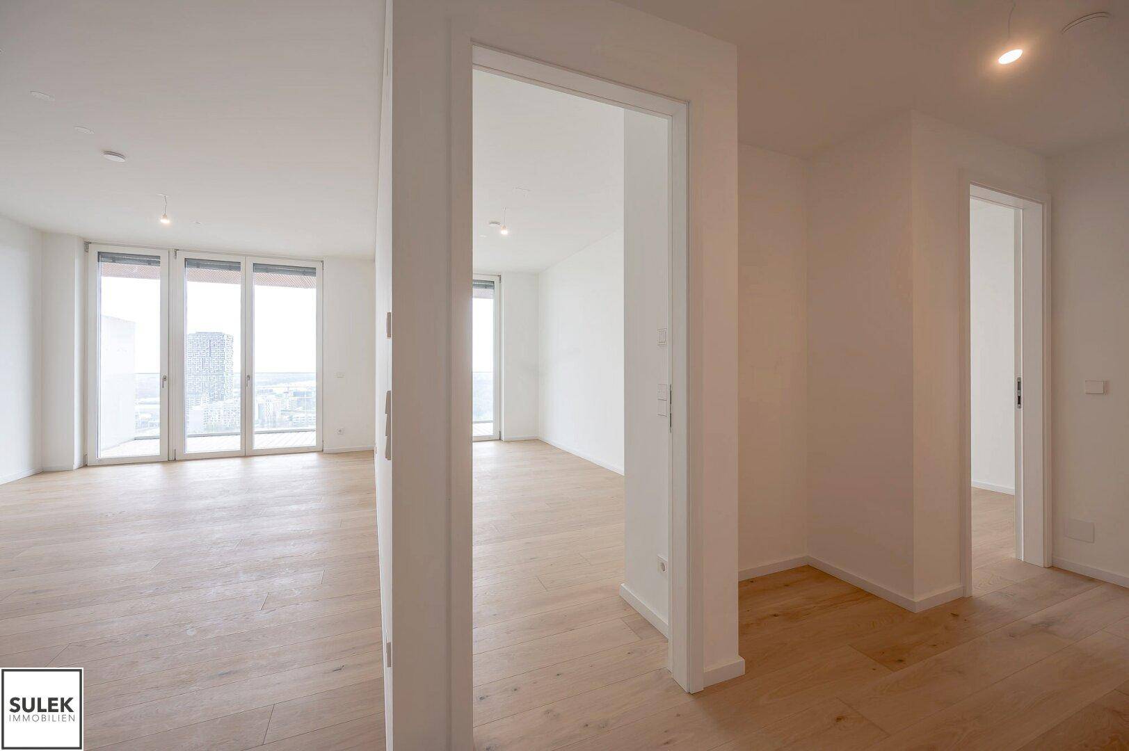 Hoch hinaus! Wohnen mit Fernblick über Wien | 3 Zimmer Erstbezug mit Balkon | Pool, Fitness & Spa