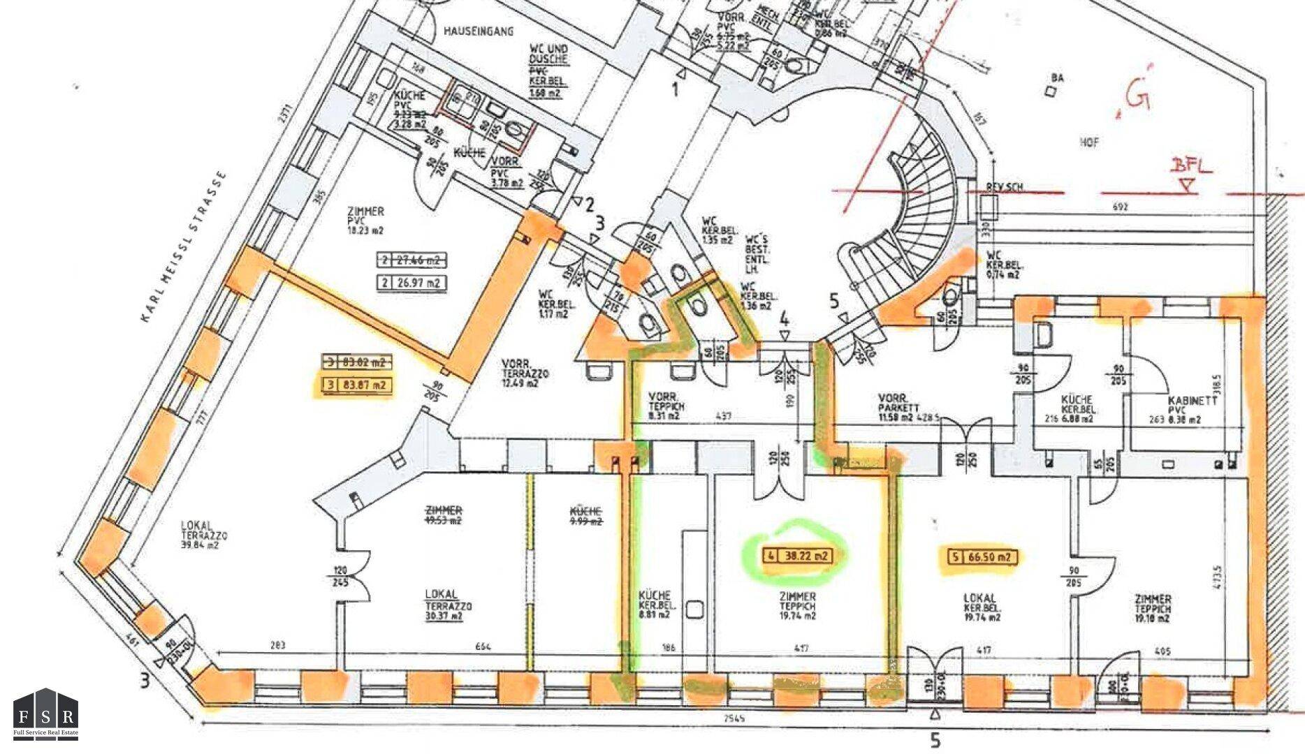 Steinwurf zum Augarten - Nach Ihren Vorstellungen und Bedürfnissen gestalten: Sanierungsbedürftiges strassenseitiges Büro/Praxis/Verkaufsfläche etc. und Wohnung - Prachtvolles Stilaltbauhaus