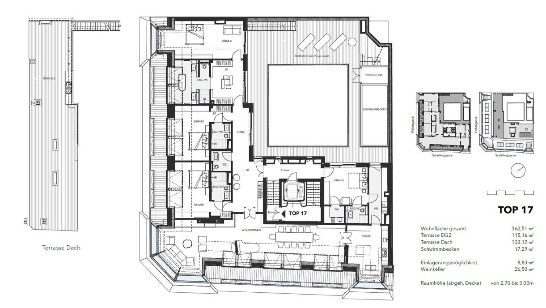 Dachgeschosswohnung mit Pool | Blick auf Stephansdom