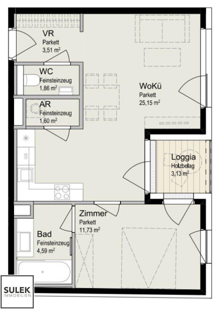 schöner Neubau! 2 Zimmer + südseitige Loggia in beliebter Lage (Zieglergasse) ab 1.6 beziehbar!