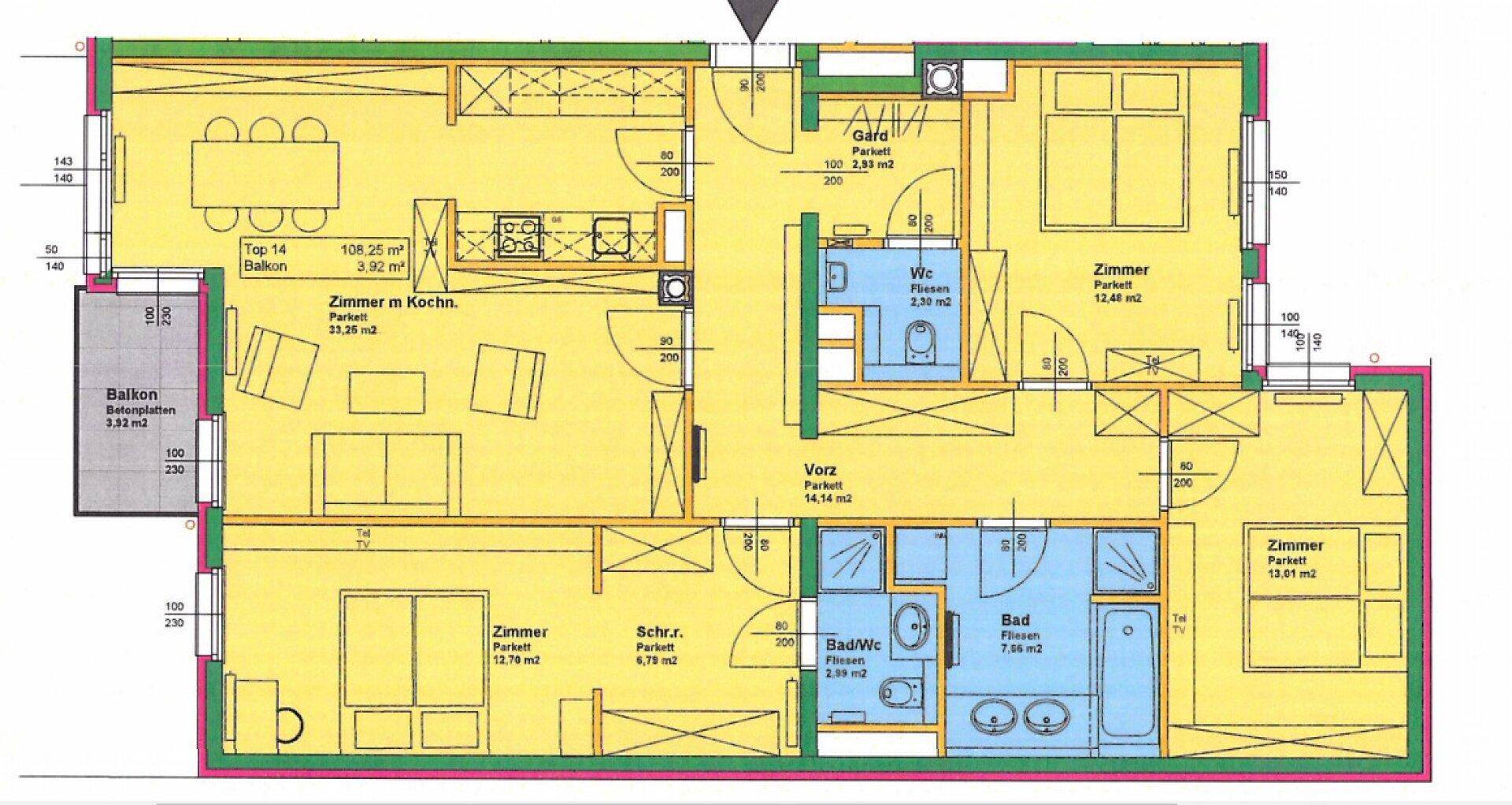 4 Zimmer-Balkon-Whg., begrünter Innenhof im Dritten
