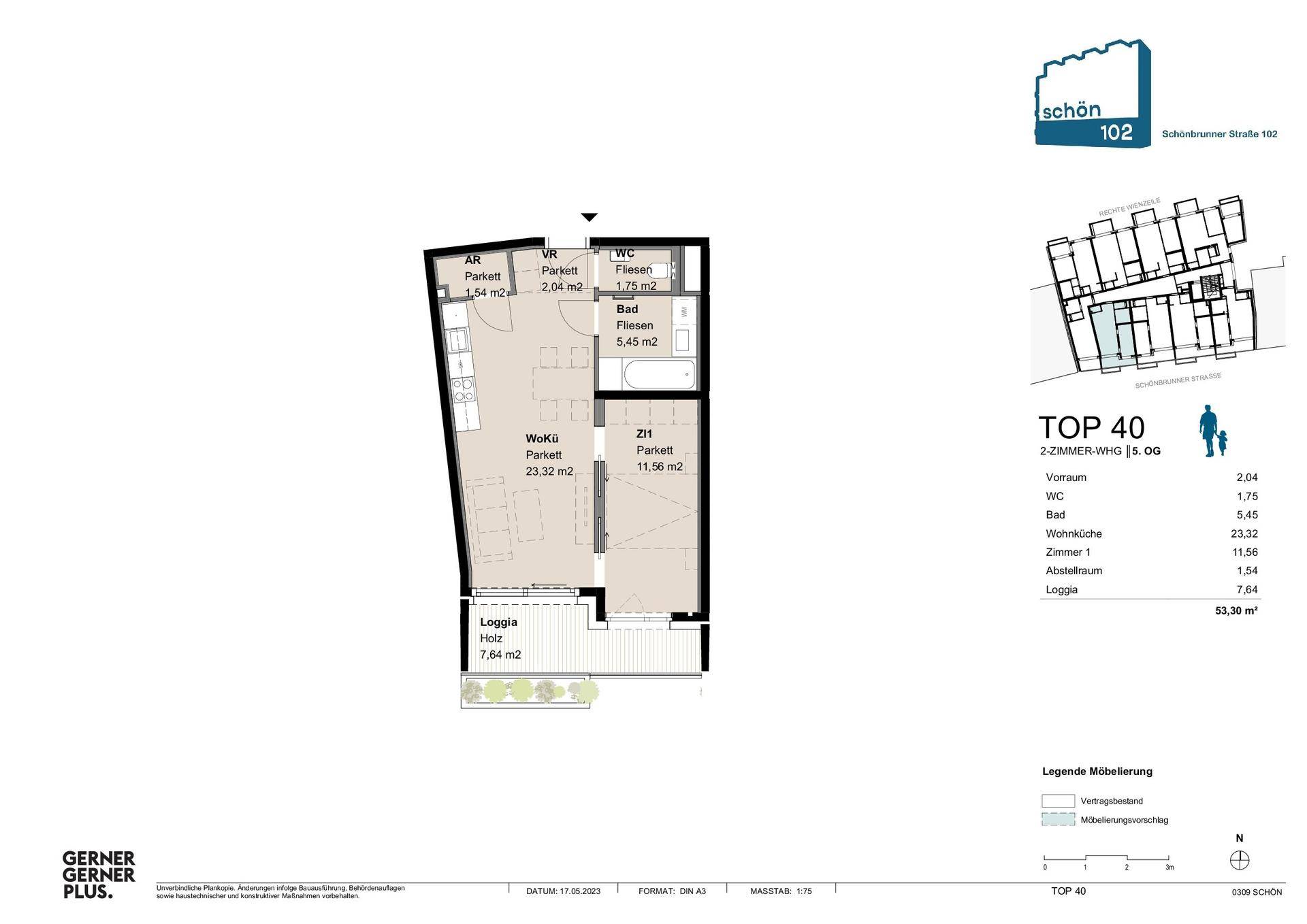 2-Zimmer-Neubauwohnung mit Loggia im 5. Obergeschoss in 1050 Wien