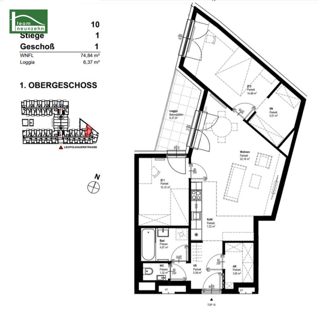 LEO 131 - Hofseitige Neubau-Wohnung mit Schrankraum und Abstellraum! Nur 4 Bus-Stationen zum Bahnhof Floridsdorf und viel Grün in der Nähe!