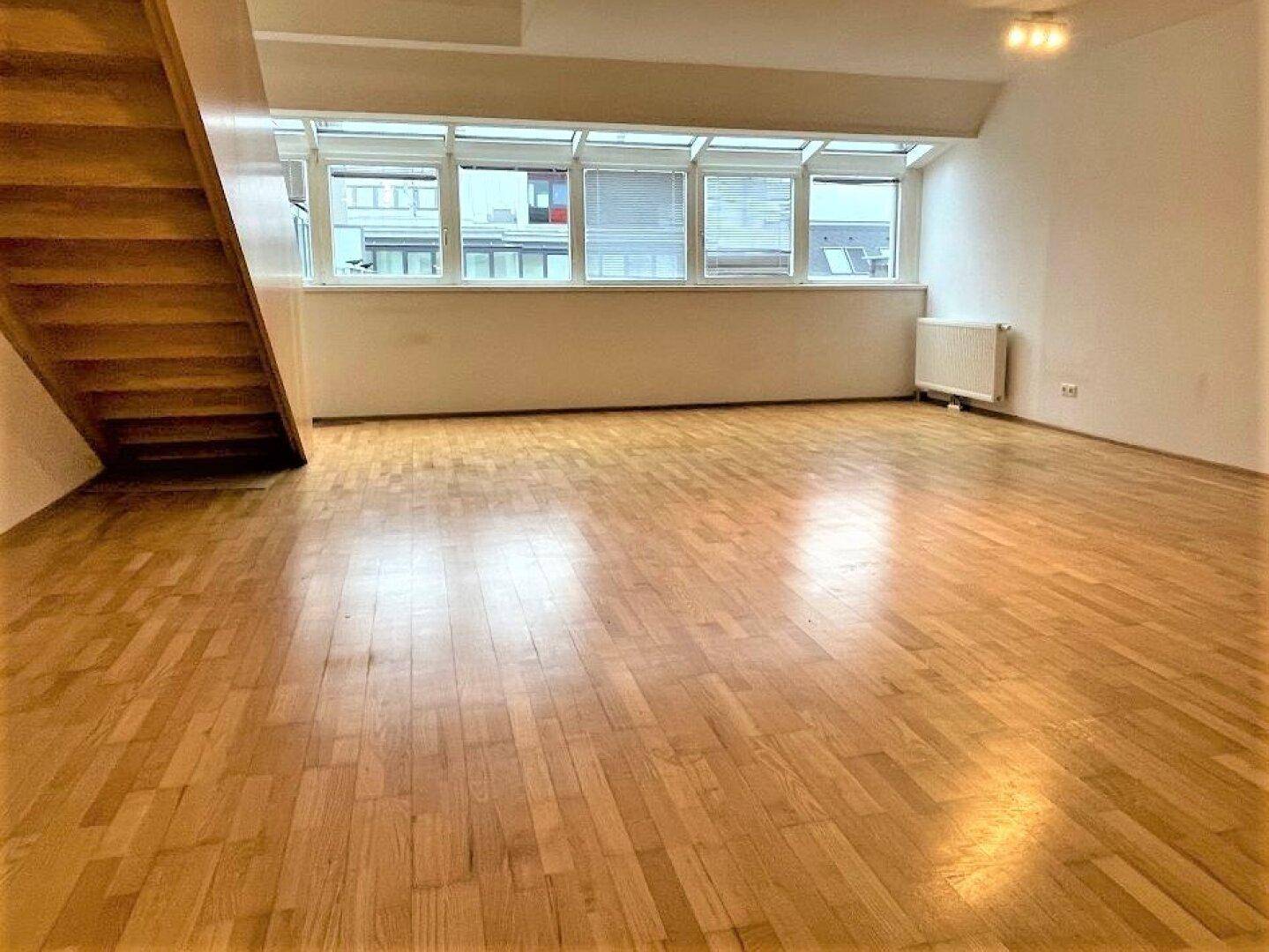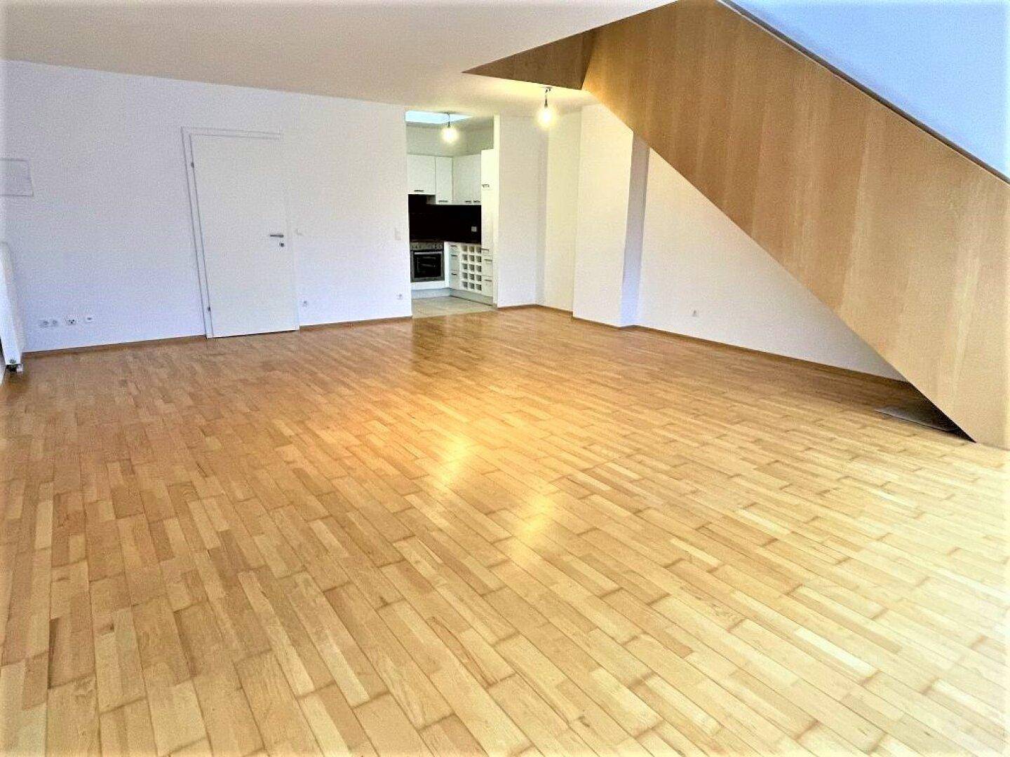 DACHGESCHOSS, FERNLICK, 95 m2 Neubau mit 22 m2 Freifläche, Wohnküche, 1 Zimmer, Wannenbad, Parketten, Innstraße