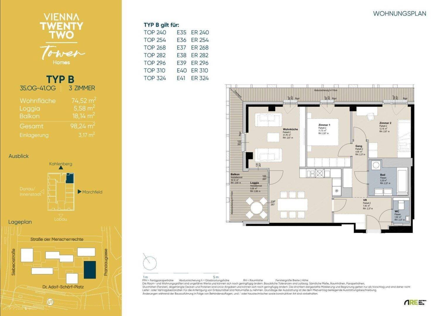3 ZIMMER 35. OG | BALKON | VIENNA TWENTYTWO | ERSTBEZUG IN DER NEUEN DONAUSTADT |MIETBEGINN 1. APRIL
