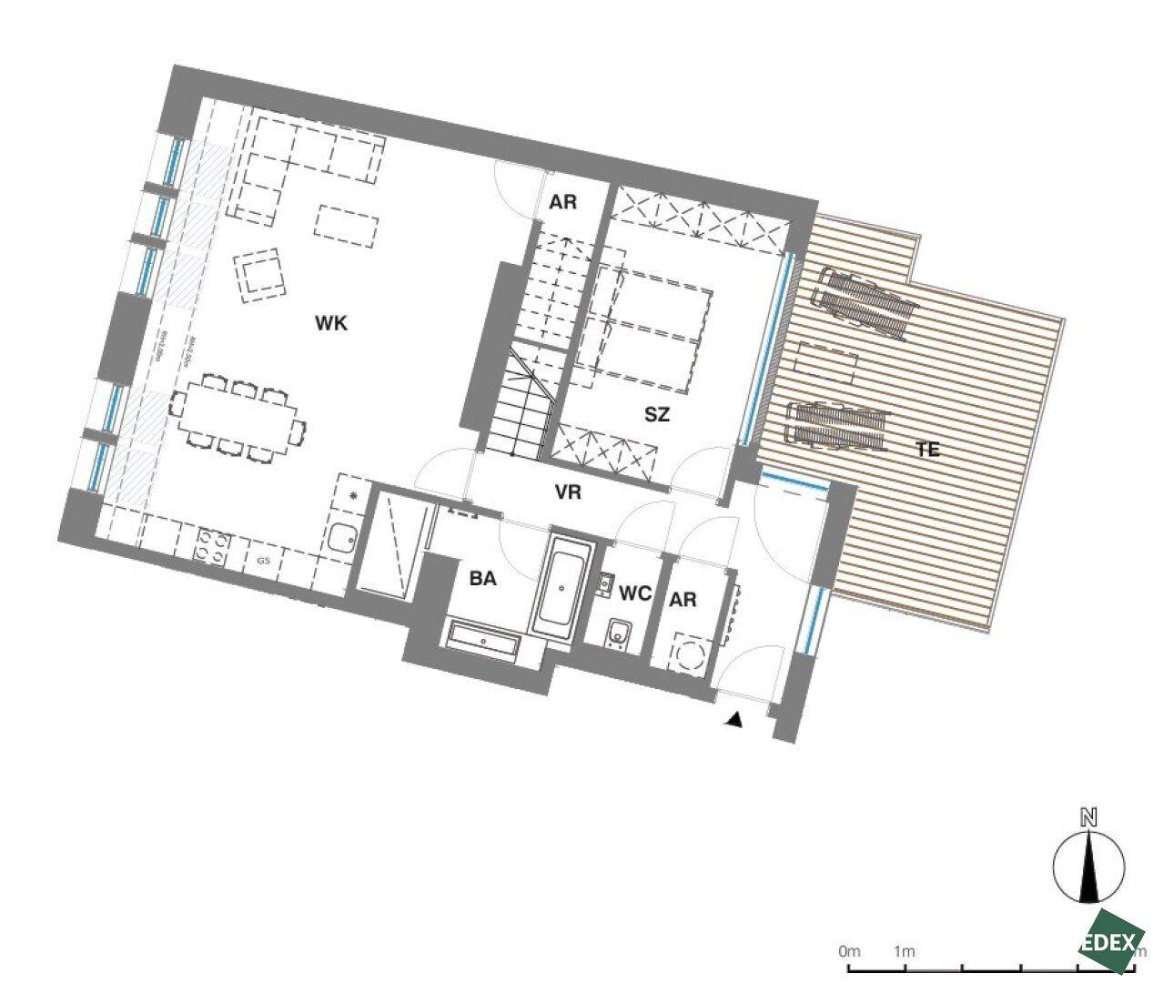 Dachgeschoss-Maisonettewohnung mit zwei Terrassen in ruhiger Innenhoflage