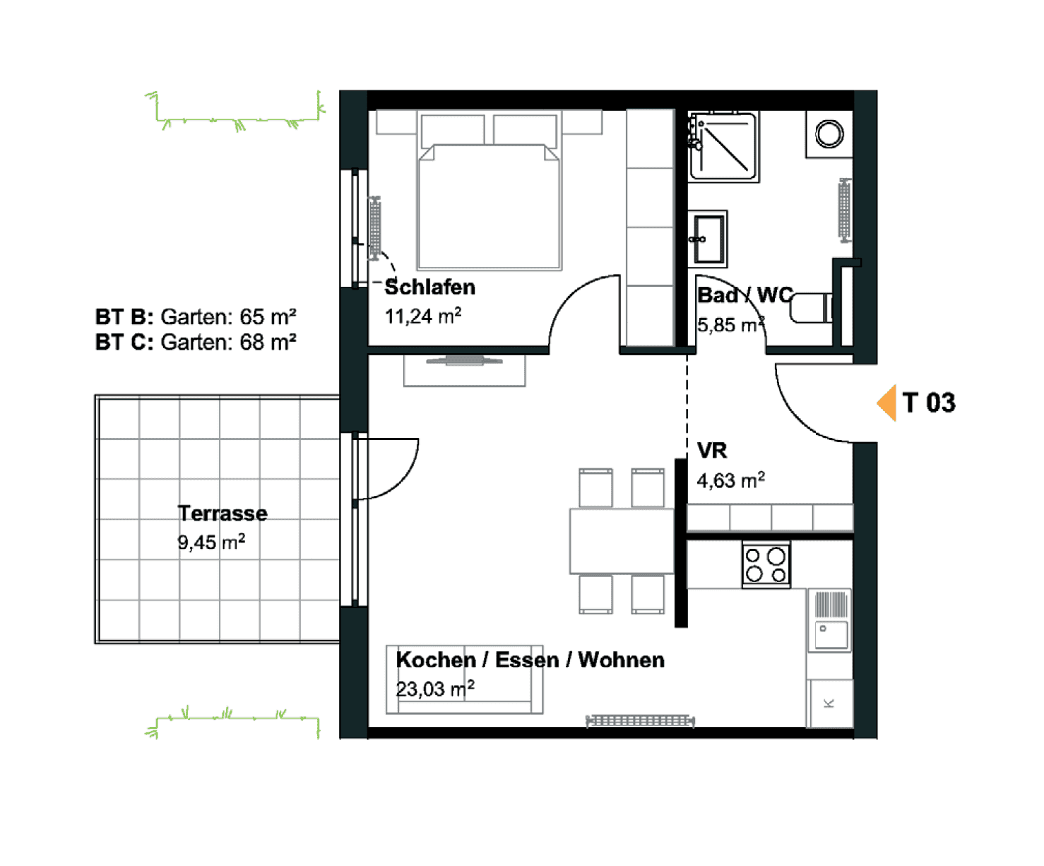 44 m2 Neubau-Gartenwohnung inkl. Tiefgaragenplatz in der Friedensstraße