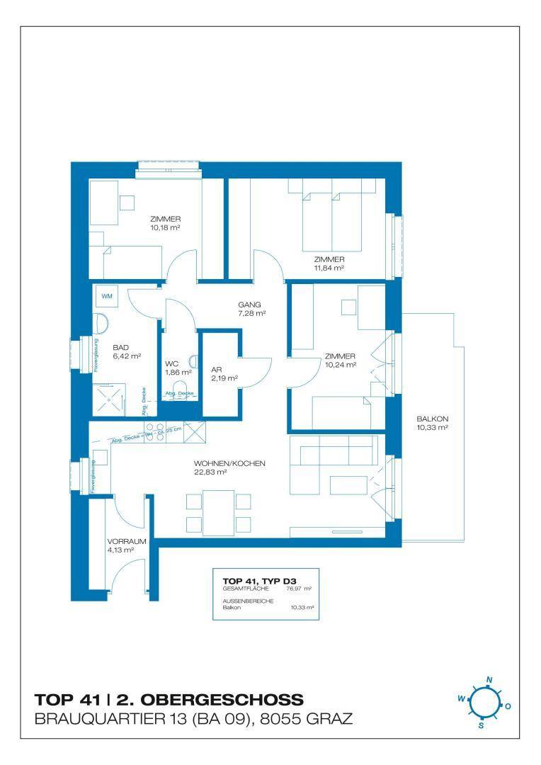 Erstbezug - Brauquartier - Puntigam - 76,97m² - Balkon - 4 Zimmer - inkl. Tiefgarage