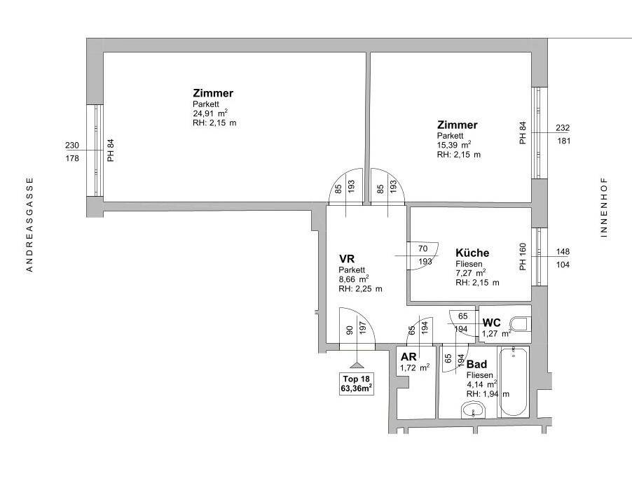 Ruhige 2-Zimmer-Wohnung auf der Mariahilfer Straße