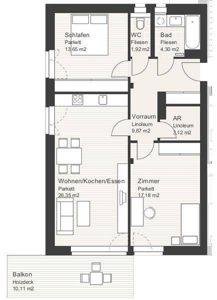 Helle 2-Zimmer-Wohnung mit Balkon inkl. Küchenblock - geförderte Miete ODER geförderte Miete mit Kaufoption - 2 Zimmer