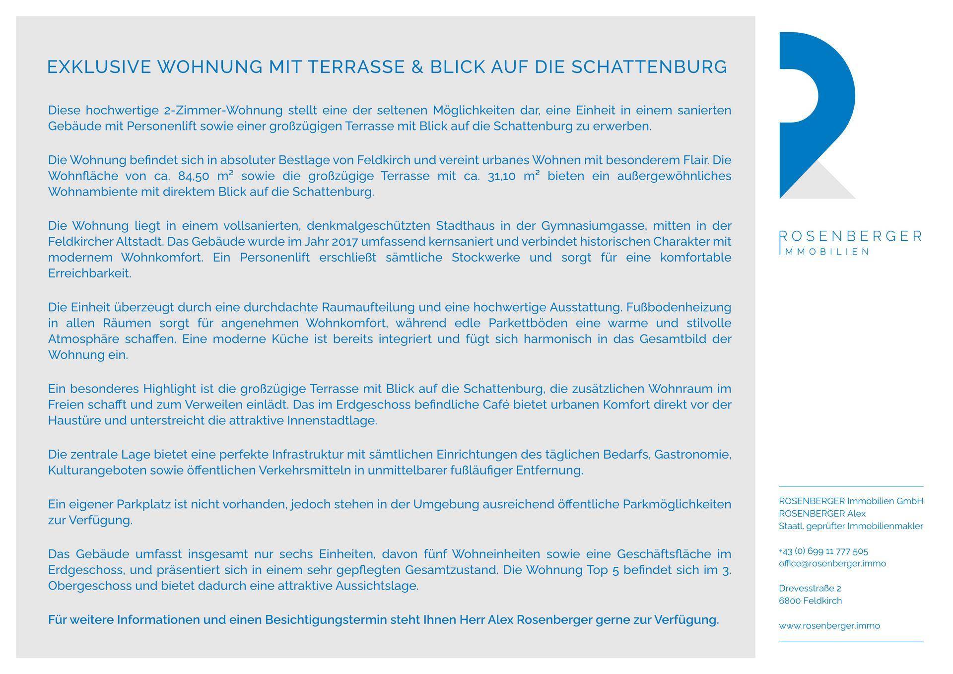 Exklusive Wohnung mit Terrasse & Blick auf die Schattenburg