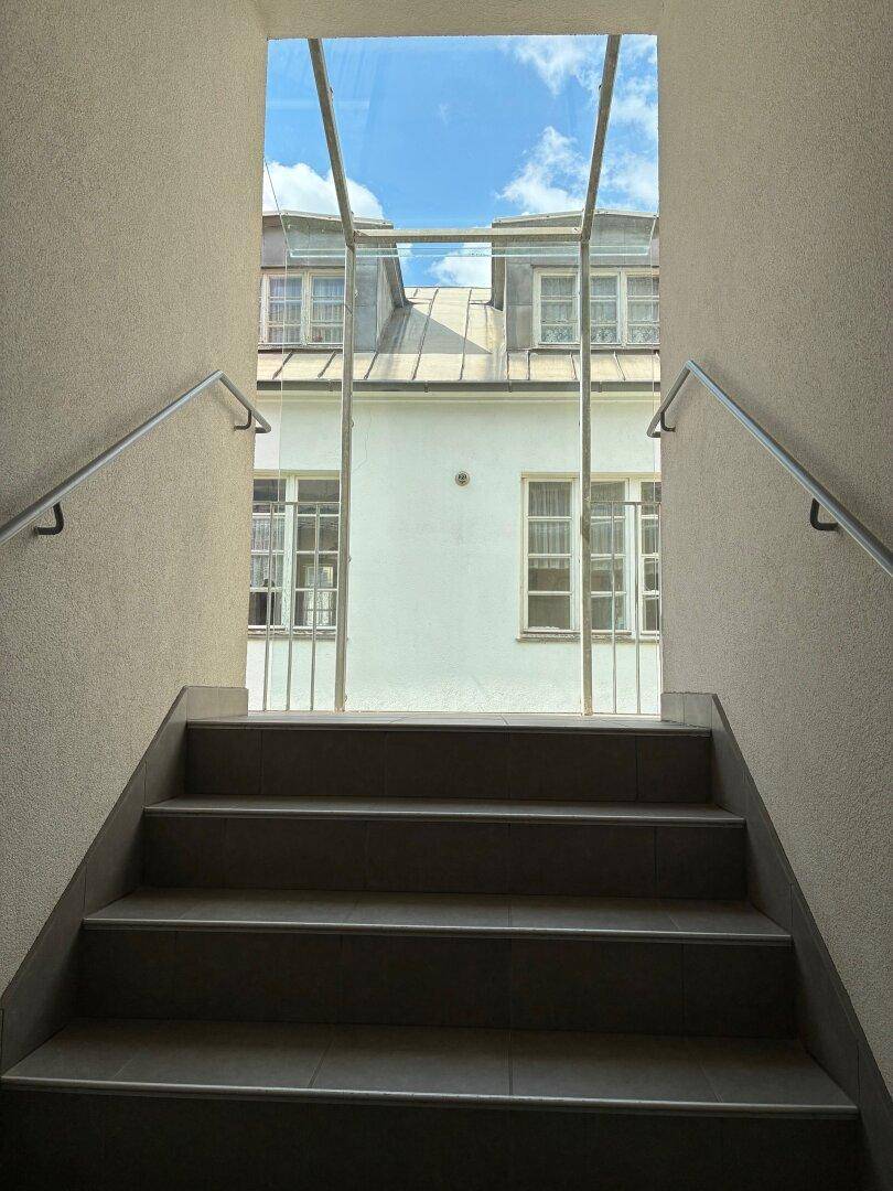 großzügiges Loft - Wohn-Büro - Atelier, 1. OG ohne Lift Spacious Loft-Residential-Office - Blick in den grünen Innenhof - direkt beim Arbeitsgericht/Franz-Josefs-Bahnhof